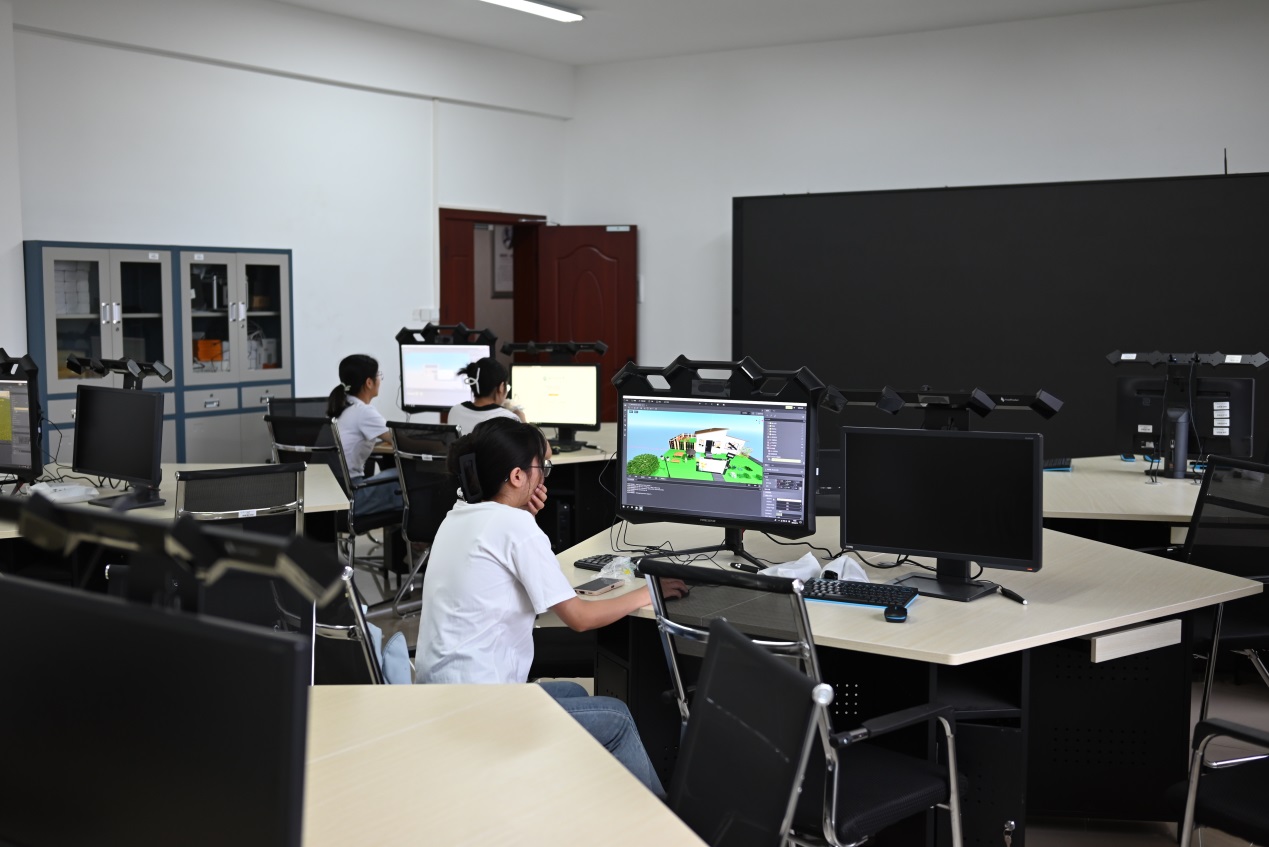 您所在的位置: 首页» 本科教育» 实验教学» 场地与设备 虚拟现实教育应用实训室简介 时间:2023-10-23 14:50:00 中国·yl88858永利(Macau)股份有限公司-Official Website 虚拟现实教育应用实训室搭建了3D虚拟现实教学大屏、桌面三维交互一体机、6dof头戴式一体机、MR头盔等硬件设备及相关软件,学生可通过这些教学设备,沉浸漫游,体验3D/VR/MR等虚拟场景。老师通过VR内容创作软件可自由创作课件,并通过3D虚拟现实教学大屏进行展示、交互,学生可通过VR头盔进行交互操作,沉浸式教学。 老师们通过电脑技术,将虚拟的信息应用到真实世界,两种信息相互补充、叠加,并同时存在于教室中,帮助学生更立体地理解和掌握知识与技能。