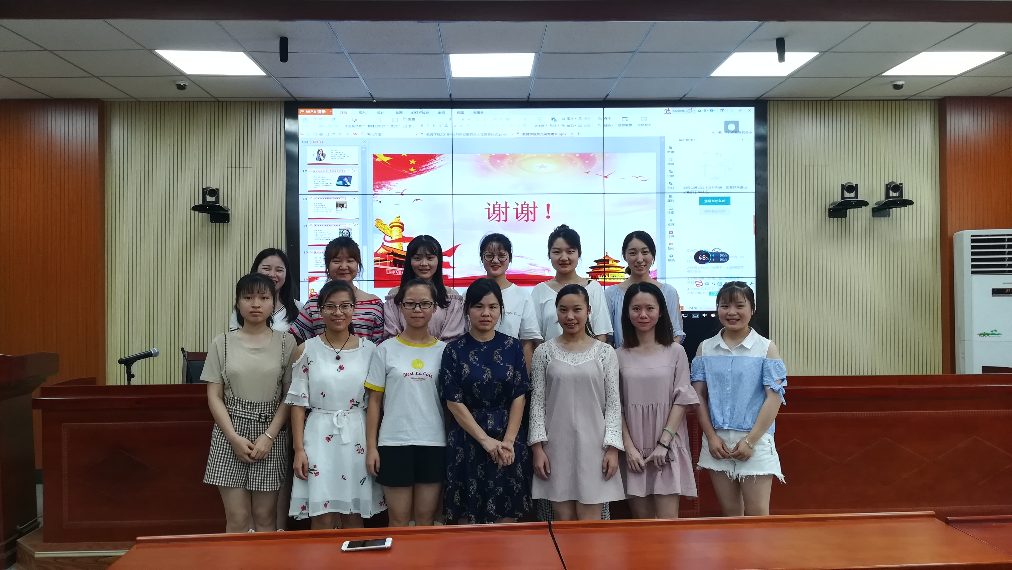 首先进行的是yl88858永利集团2018年6月新发展党员入党宣誓仪式。在全体起立奏国际歌之后,由研究生党支部书记曾玉云同志宣读本次新发展党员的花名册。接着是学院优秀党员代表黄馨慧同志领读入党誓词,坚定的声音代表着向党的决心。在宣誓过后,学院正式党员吴晨茜同志及本次新发展党员颜晶同志代表发言,她们在学习、工作、生活等各个方面都发挥先锋模范作用,以严格的标准要求自己,为党的事业贡献自己的青春和热血。最后由本科生党支部书记胡银华老师发表讲话,她首先欢迎和祝贺成为新发展党员的同志们,并且提出了自己的几点期望,希望每个人都能够提高自我,积极学习,争当学生表率。