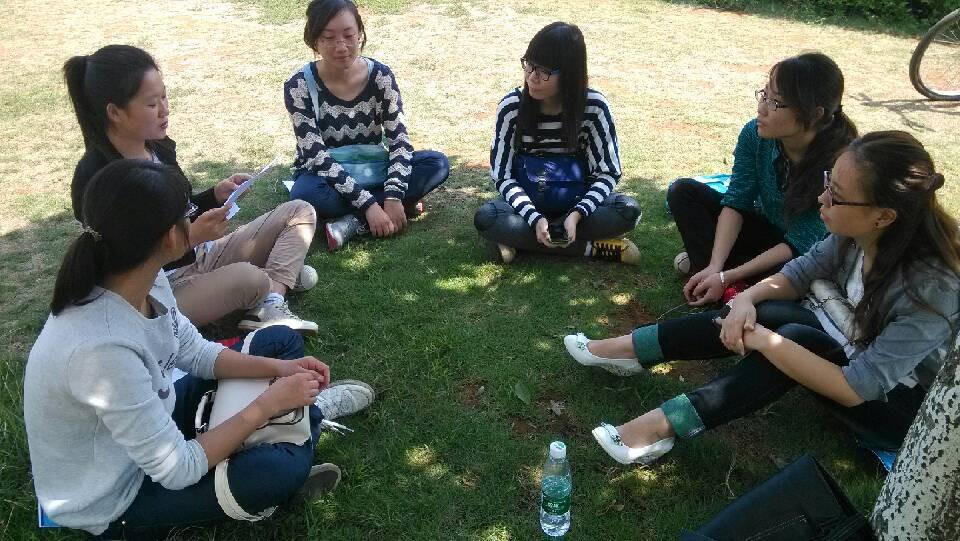 9月29日,一个阳光灿烂的中午,在北校图书馆旁的草坪上有七个女生做成一个圈在津津有味地讨论着什么,这是教育系支部在召开新一学期的第一次民主生活会。