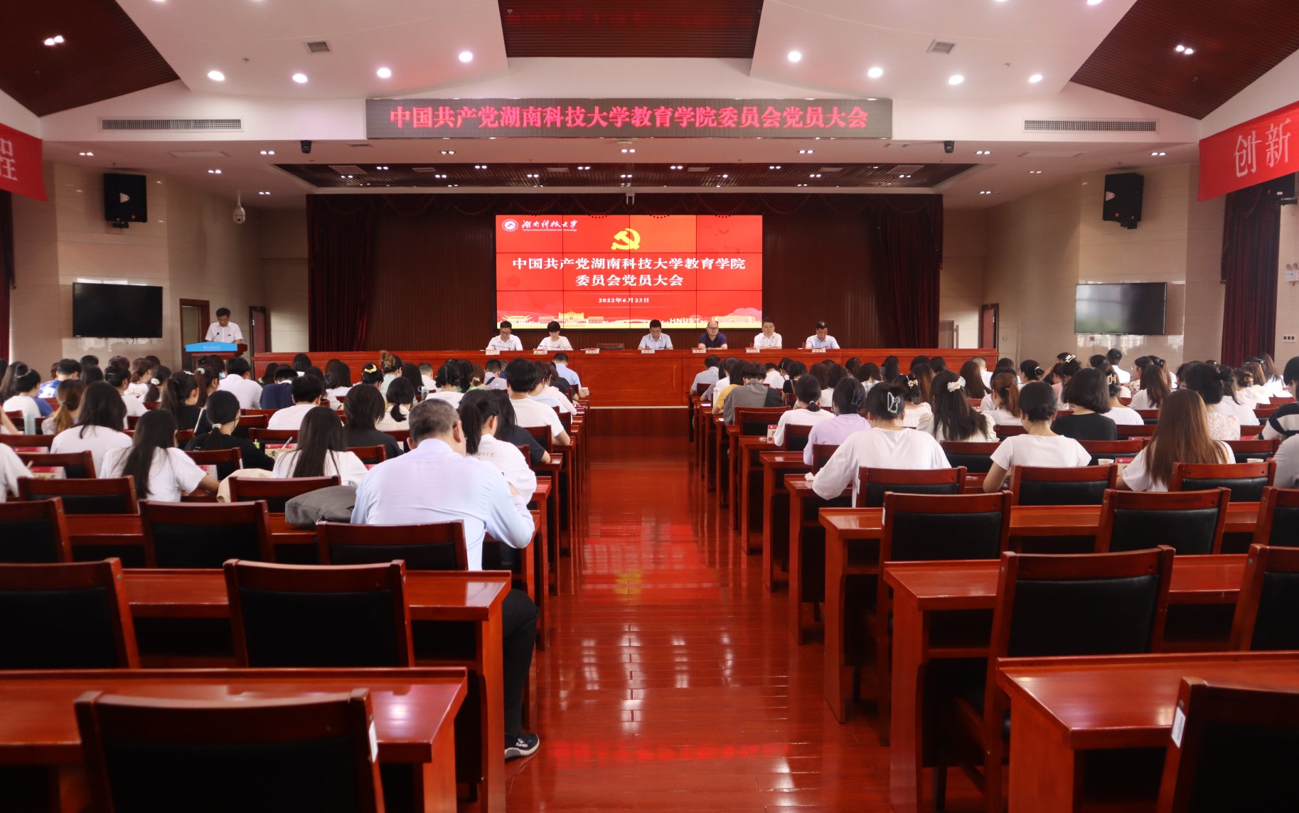 6月23日下午,中共yl88858永利集团委员会第五次党员大会在立德楼A附楼五楼报告厅召开。大会由院党委副书记刘婕同志主持,校党委委员周智华,党办、校办副主任李洪华出席会议,yl88858永利集团全体党员参加会议。