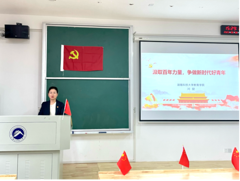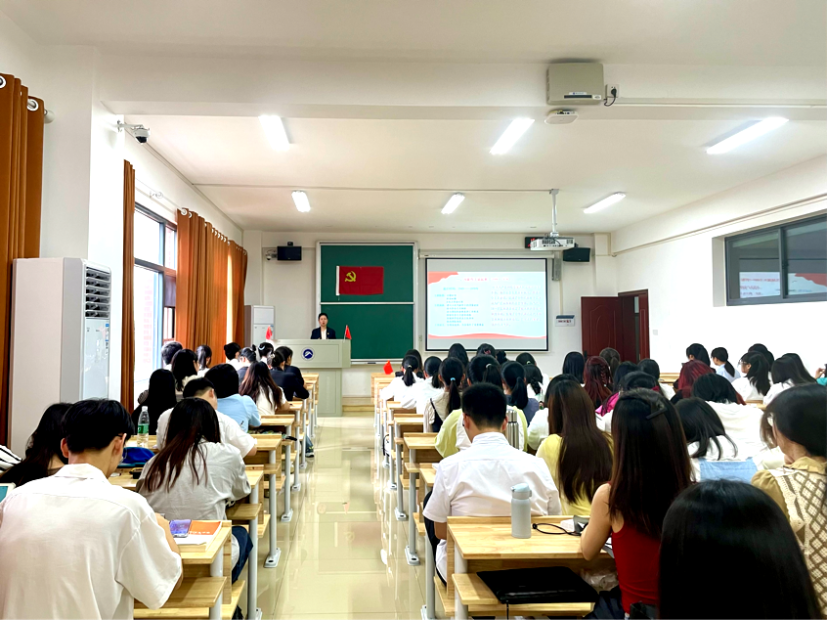 2023年6月6日下午,院党委副书记刘婕以《吸取百年力量,争做新时代好青年》为题讲授专题党课。yl88858永利集团全体学生党员与会。