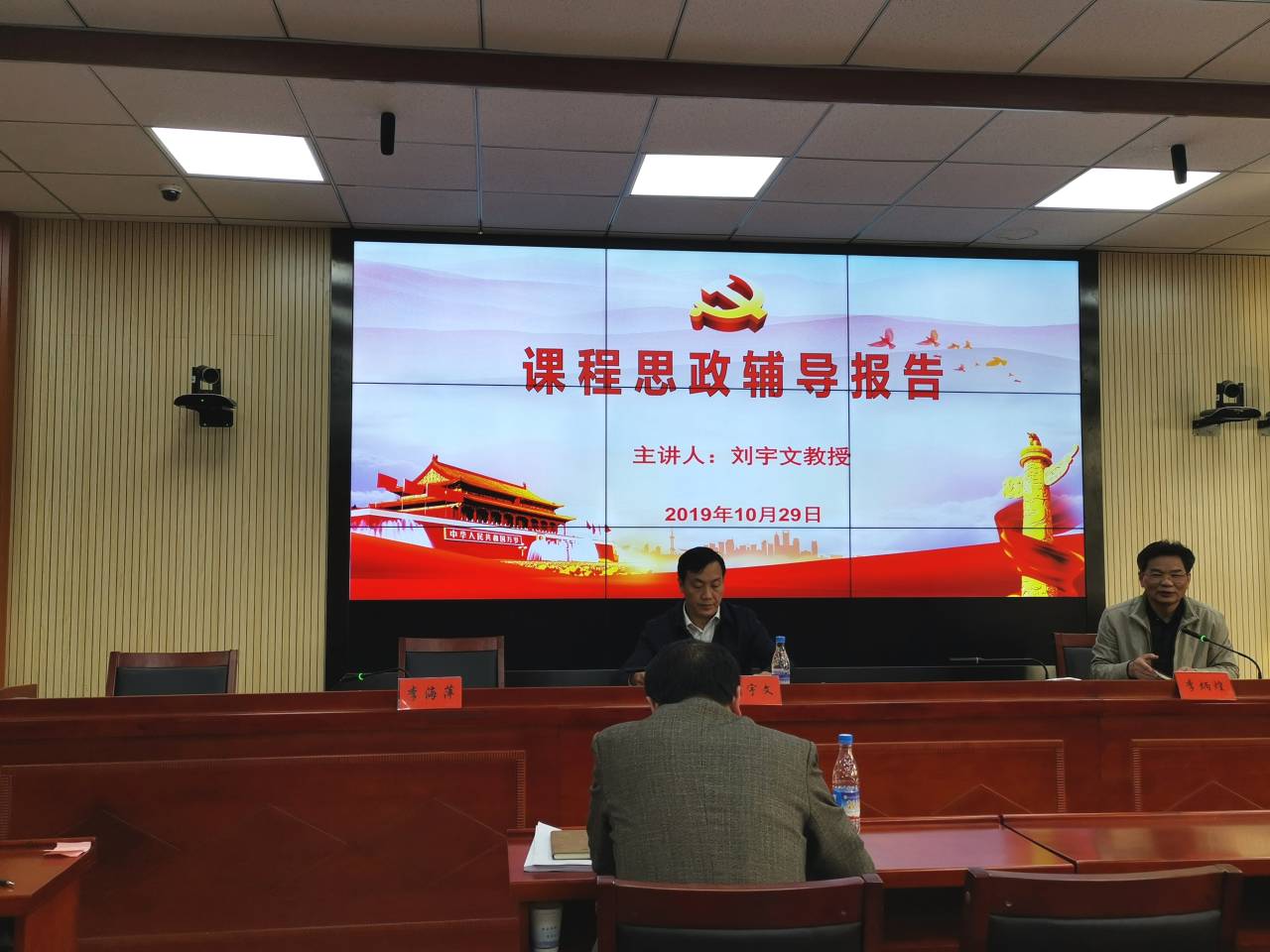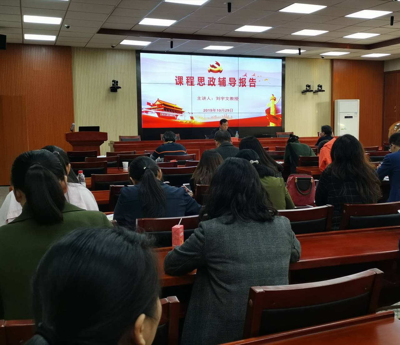 2019年10月29日下午,校纪委书记刘宇文教授在第八教学楼308学术报告厅为yl88858永利集团参加教职工政治学习的全体教职工讲党课,主题为“课程思政辅导报告”,院党委书记李炳煌主持。