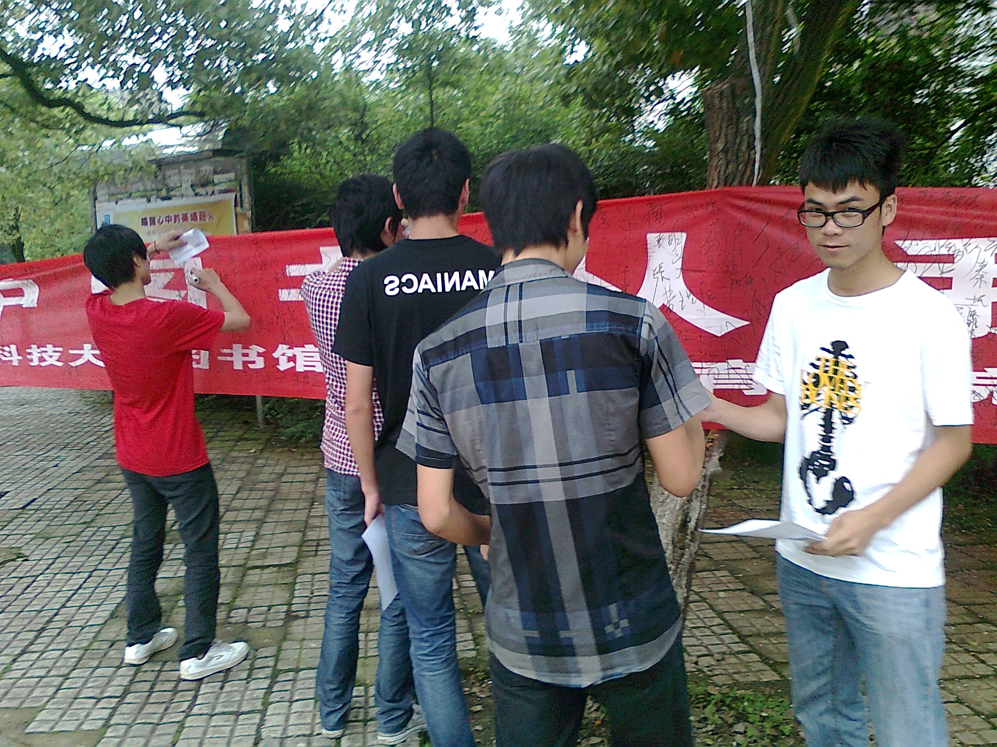 “爱护图书从我做起。”悬挂在电信路口的鲜艳横幅,铿锵有力的标语,吸引了不少同学的注意。他们纷纷驻足,听过工作人员讲解活动的目的后,接过笔,在志愿者信息登记表上填写自己的基本信息,并在横幅上郑重的签下自己的名字。“图书馆的图书不仅是我们学习资料的重要来源,更是科大财产的一部分,我们有义务好好的保护这笔珍贵的财富。”一位参与活动的同学如是说道。