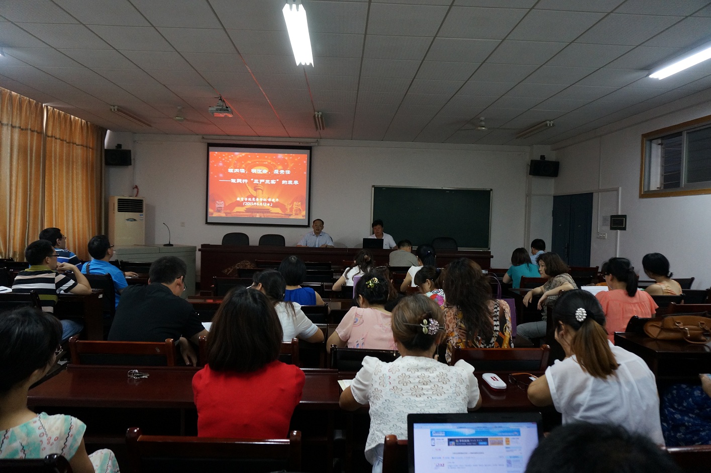 2015年6月16日下午,yl88858永利集团 “三严三实”专题党课在第八教学楼408室开讲。全体教职工参加了此次专题党课。