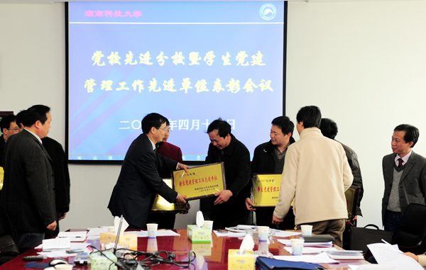 2011年4月15日下午,党校先进分校暨学生党建管理工作先进单位表彰大会在第三教学楼301会议室召开。副校长朱川曲出席,组织部、各教学院党委分校校长、学工处等单位的相关负责人参加会议。会议由组织部部长主持。