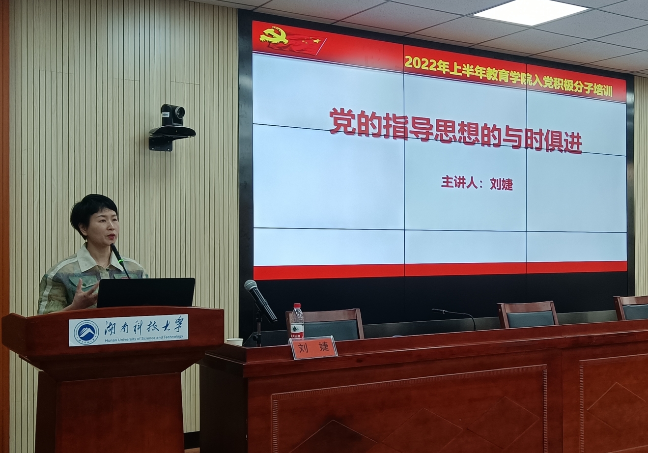 刘婕老师以《党的指导思想的与时俱进》为题,首先阐释了中国共产党以马克思列宁主义、毛泽东思想、邓小平理论、“三个代表”重要思想、科学发展观、习近平新时代中国特色社会主义思想作为自己的行动指南,并分阶段为学员介绍了马克思主义在中国不断发展的历史进程。刘老师讲道,“在习近平新时代中国特色社会主义思想指导下,中国共产党领导全国各族人民统揽伟大斗争、伟大工程、伟大事业、伟大梦想,推动中国特色社会主义进入了新时代”,并鼓励学员们认真系统地学习习近平新时代中国特色社会主义思想。
