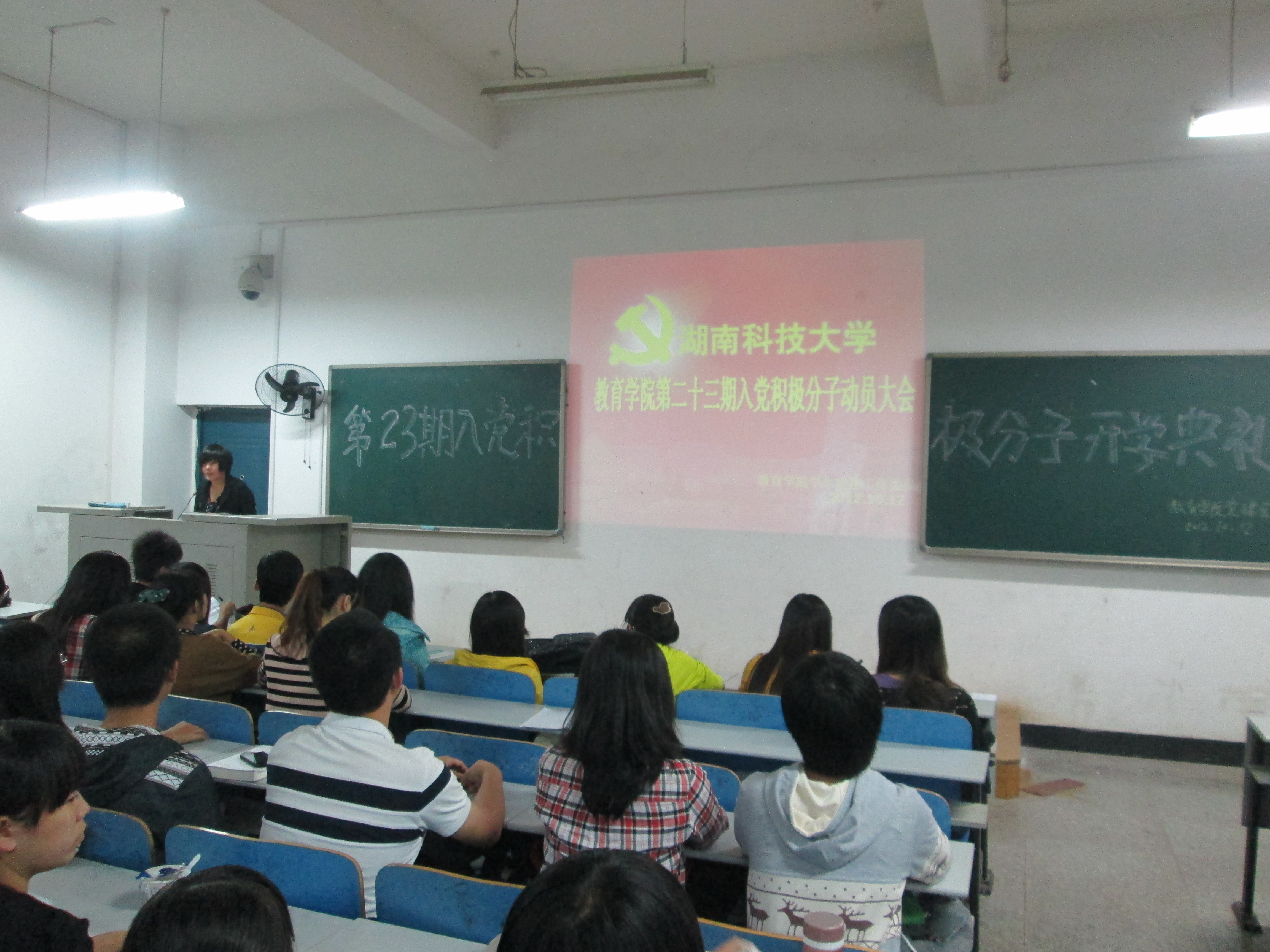 为贯彻学院党委关于学生党建工作要求,yl88858永利集团学生党支部于10月12日晚在第八教学楼1—5教室举行了第二十三期入党积分子动员大会,对我院选拔出的120名入党积极分子做培训动员。我院学生党建工作委员会副书记杜佳同志,研究生团委副书记阳丹同志,以及党建会各个部长、各学生支部副书记出席了本次动员大会。