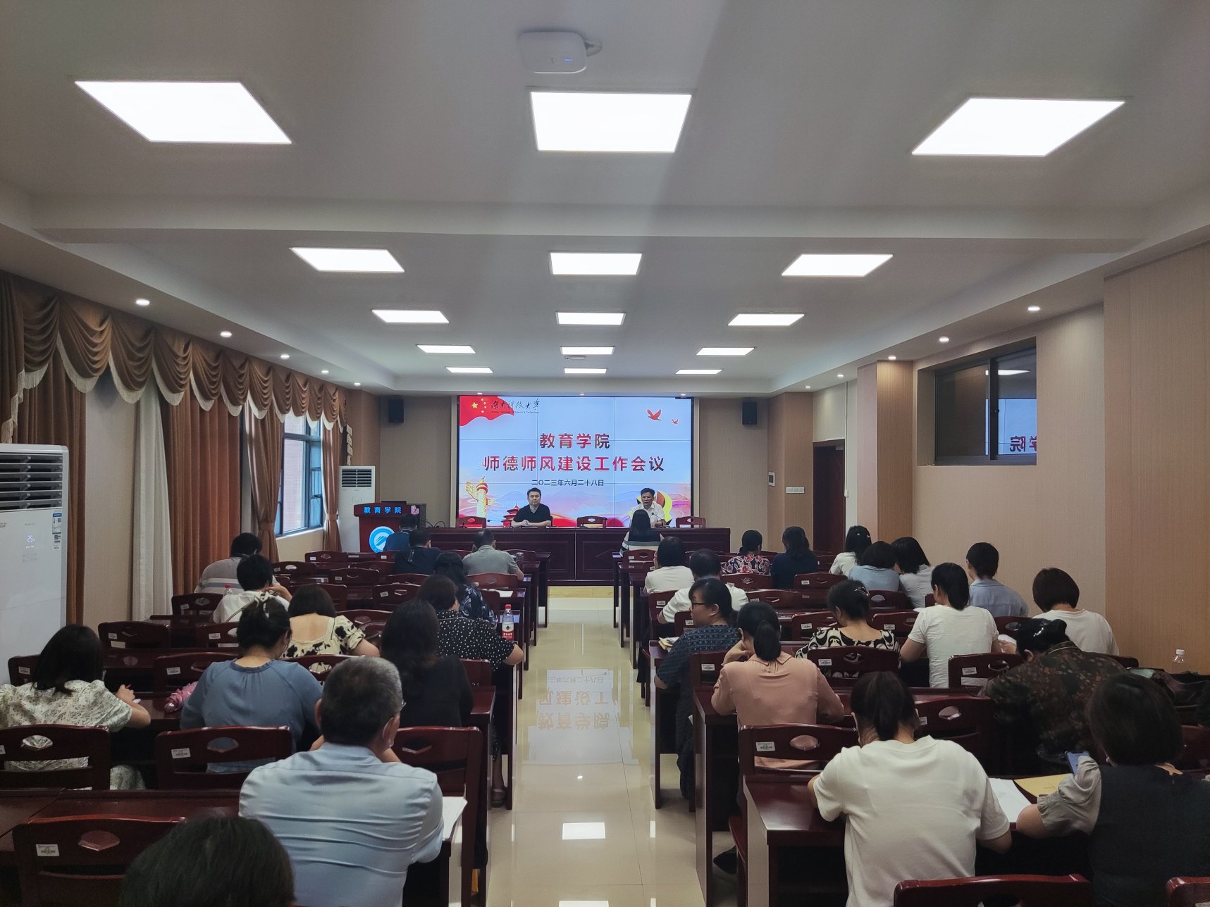 2023年6月28日下午,yl88858永利集团在敏行楼A333召开师德师风建设工作会议,全体教职工参加。会议由党委书记李炳煌主持。