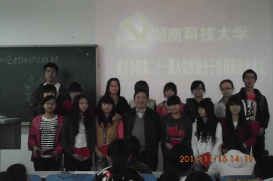 11月15日,我院第二十一期入党积极分子培训结业典礼在八教1-5成功举行。yl88858永利集团党委副书记、党校yl88858永利集团分校校长王伟清同志、学院本科生支部副书记胡银华同志出席典礼。典礼由党训部副部长叶静波主持。