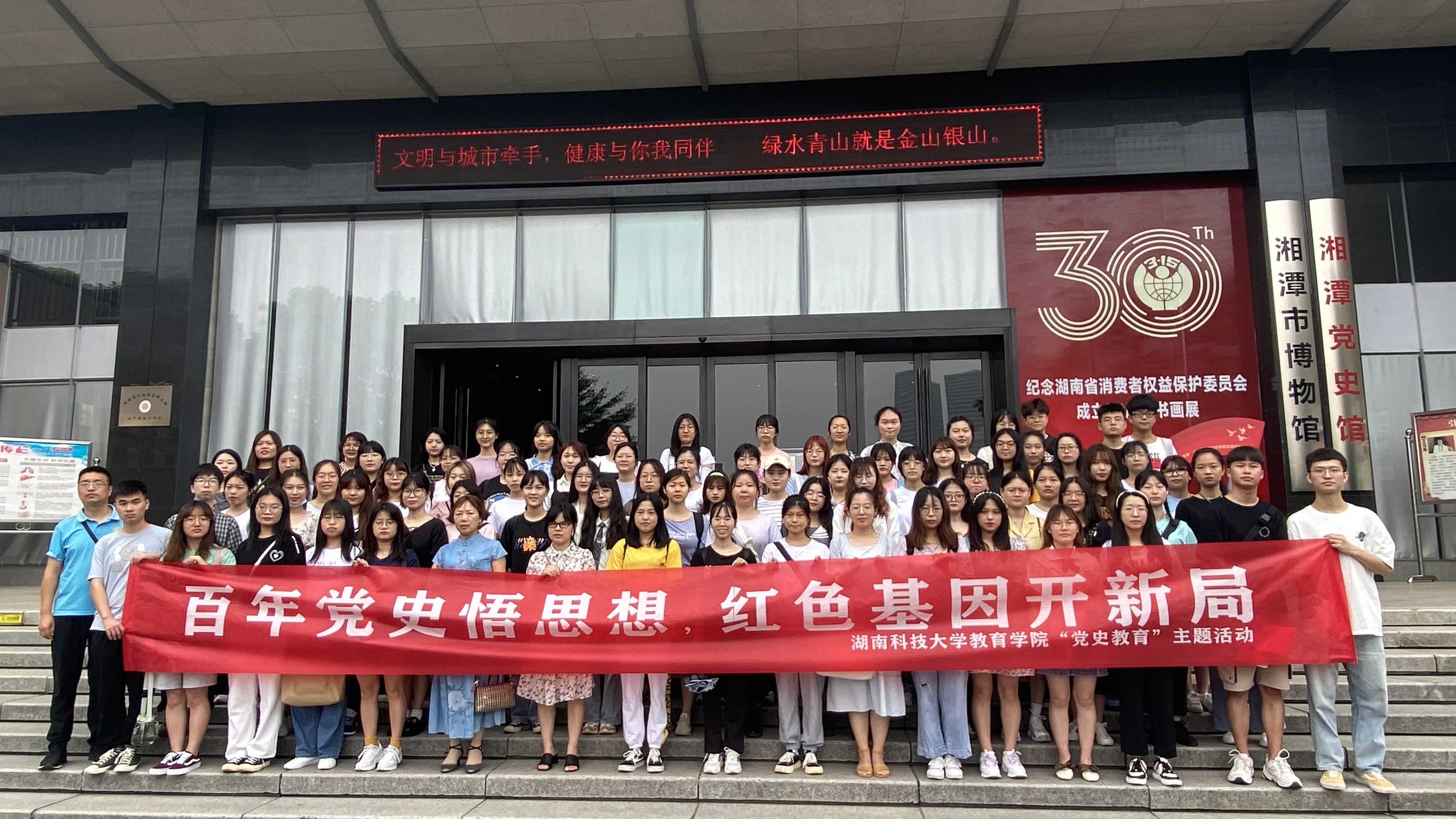6月19日上午9:00,yl88858永利集团“百年党史悟思想,红色基因开新局”党史学习教育实践活动在湘潭市党史馆开展。yl88858永利集团第一党支部书记尹琼芳、第三党支部书记李涛、第四党支部书记胡银华组织学生党员参加。