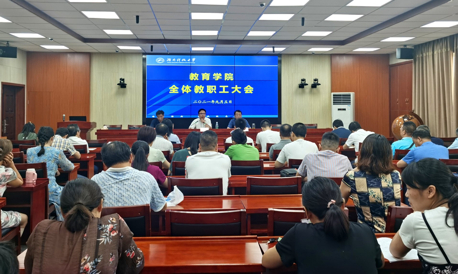 9月5日下午,yl88858永利集团在八教308会议室召开全院教职工大会。校纪委书记郭时印出席。大会由yl88858永利集团党委书记李炳煌主持。
