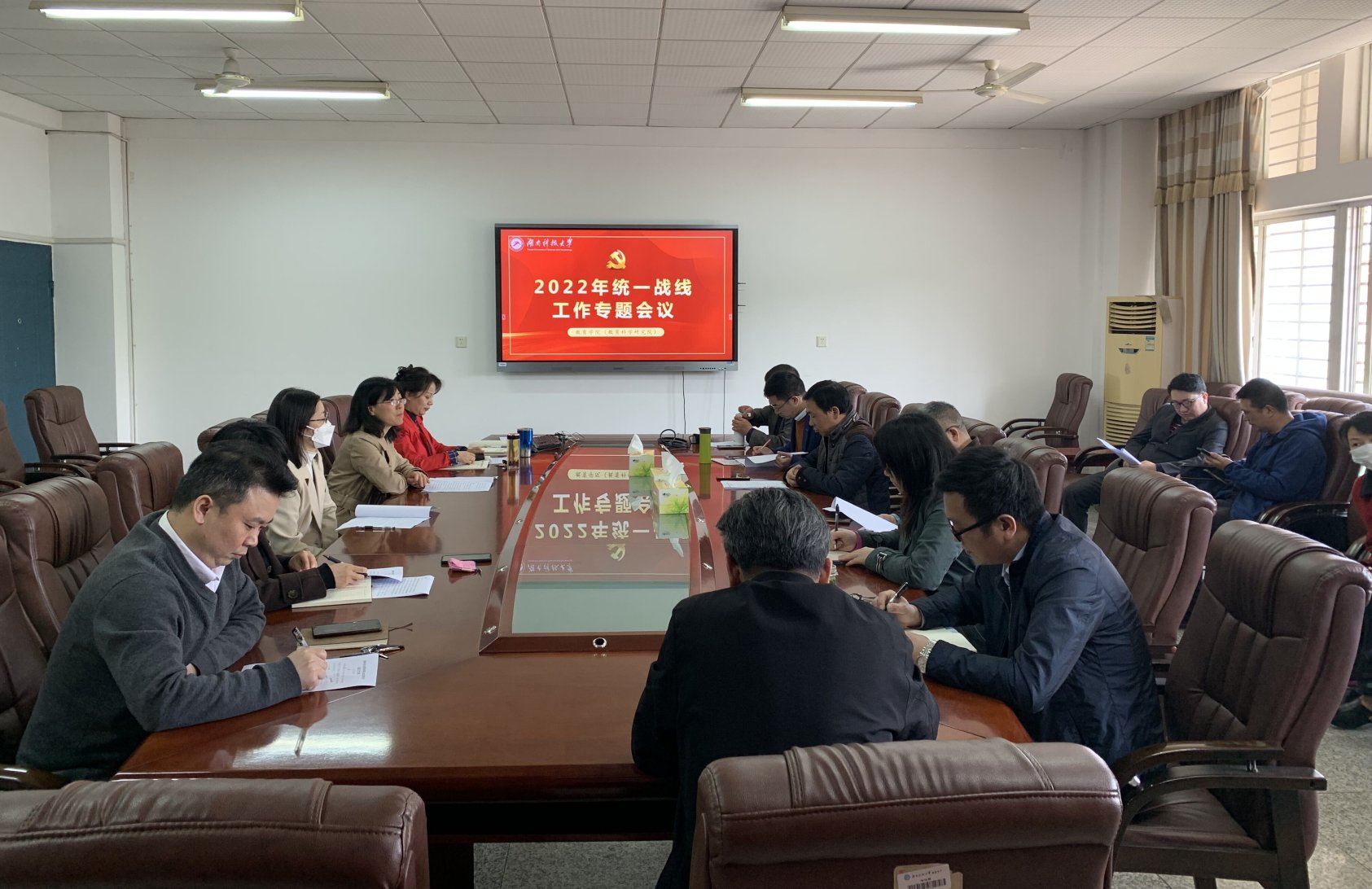 为进一步加强党对统一战线工作的集中统一领导,提高统一战线工作科学化、规范化、制度化水平。4月19日,yl88858永利集团(教育科学研究院)在八教208会议室召开2022年统一战线工作专题会议。院党委书记李炳煌主持会议,院党委领导班子、党支部书记、党员代表、党外教职工代表与会。