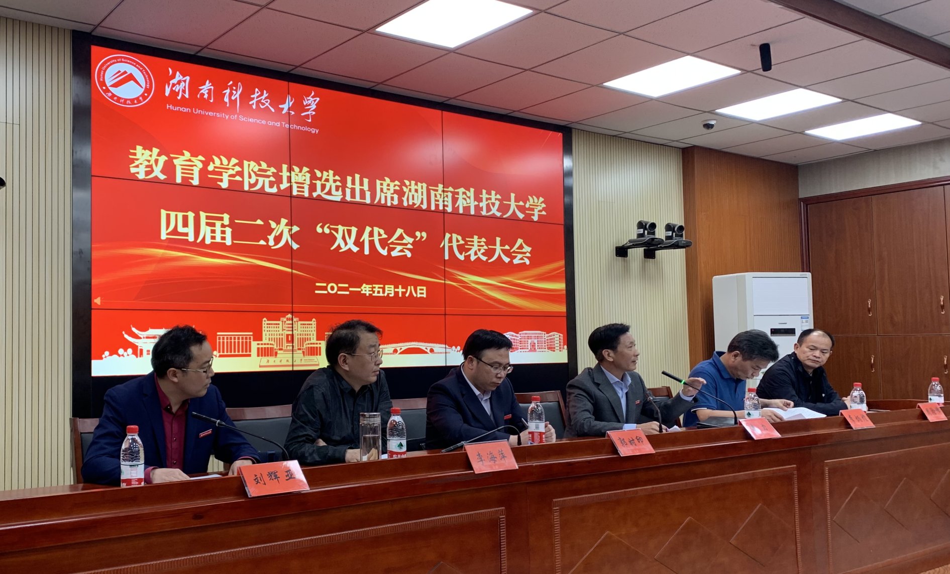 2021年5月18日下午,yl88858永利集团增选出席湖南科技大学四届二次“双代会”代表大会在八教308会议室召开。yl88858永利集团及教科院全体工会会员参会。会议由院党委副书记刘辉亚主持,校纪委书记郭时印出席,联络员校审计处处长李力同志到会指导。