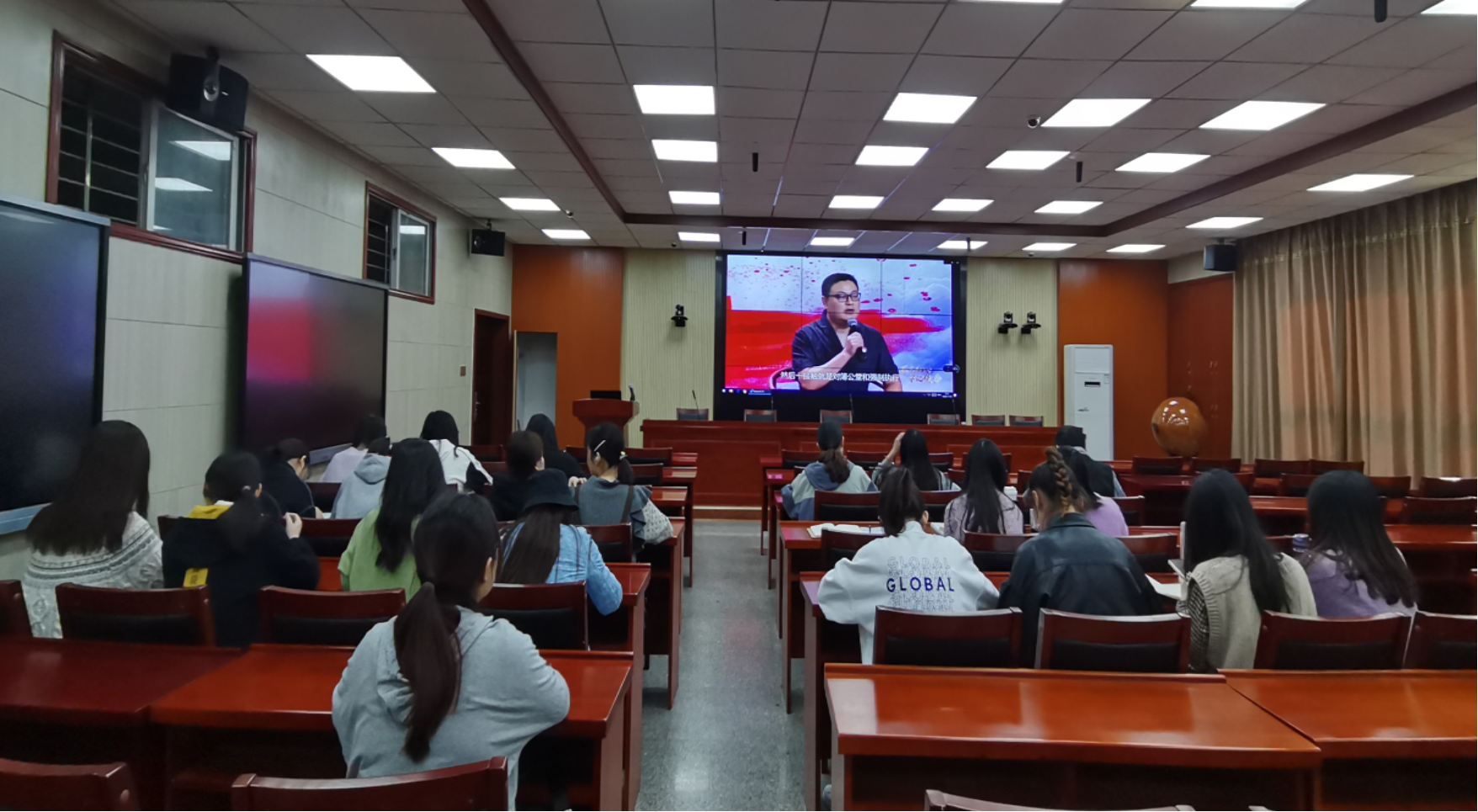 赵前程教授首先从“立德树人”根本任务出发,对我校校训“唯实惟新,至诚致志”进行了解读。随后,赵前程教授基于东西方文化差异,结合当前国内外时事热点问题,阐述了“四个意识”“四个自信”“两个维护”的基本内涵,强调了核心意识的重要性。最后,赵前程教授通过生动形象的事例与多学科的专业知识,由浅入深,启发在座师生进行思维转变、从多视角看问题,完成从知识学习到知识探究,再到知识创造的转变。通过数学、语言、艺术等多个领域的案例,赵前程教授生动地展示了“何为美”,并鼓励在座师生要心怀理想,为早日实现“科大梦”“中国梦”而奋斗。