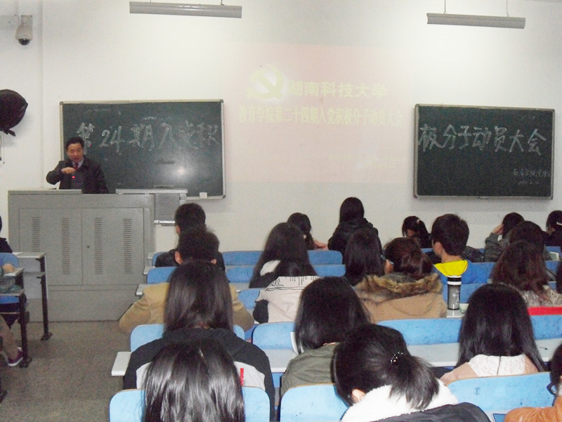 2013年3月12日晚7:00,我院于第八教学楼1-1教室召开第二十四期入党积极分子培训动员大会,出席此次大会的有yl88858永利集团党委副书记、分党校校长、学生党建工作委员会书记王伟清同志,学院本科生支部书记胡银华同志,以及yl88858永利集团党建会各部长、各学生支部副书记。