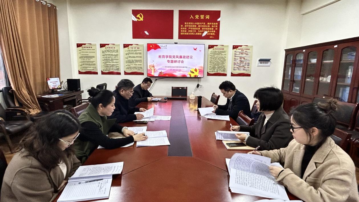 与会人员就2024年学院党风廉政建设开展研讨,院长谭千保指出,要层层压实责任,进一步严格“三公”经费管理及使用,加强对全体教职工报账等工作的教育培训。
