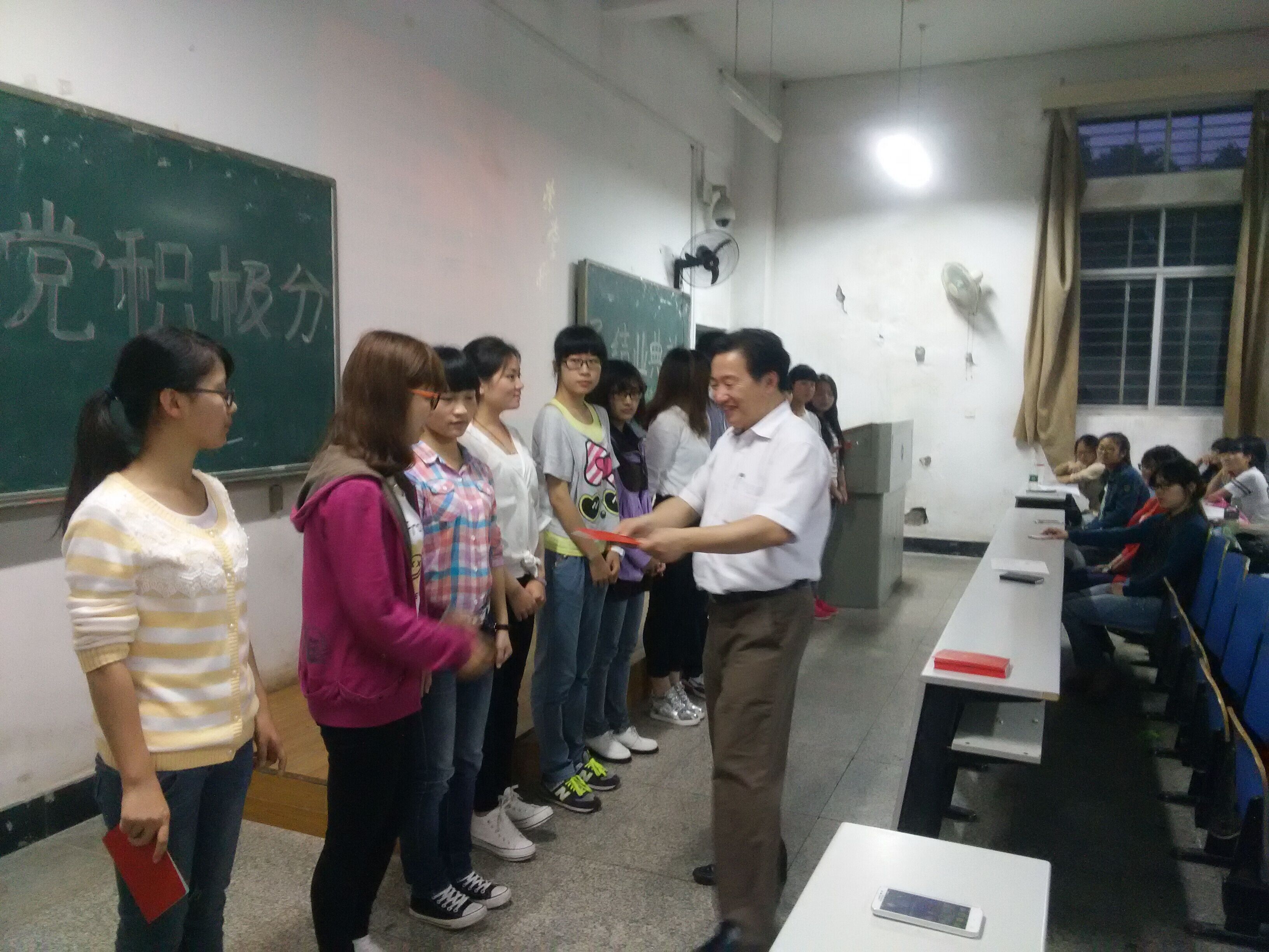 本期党校培训班班长代表廖书泷同学在大会上发言,他认真总结了培训班班长的工作。学员代表唐奕佳同学汇报了党课培训的收获,更是提出今后要在大学生活中落实“全心全意为人民服务”宗旨。随后王书记为优秀学员颁发了荣誉证书,并一起合影留念。