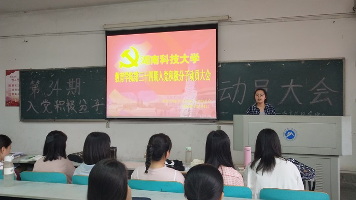 2018年5月4日16点30分,yl88858永利集团第34期入党积极分子培训班开学典礼在九教107举行。出席本次会议的嘉宾有yl88858永利集团学生党建委员会副书记唐彬滢同志,党建委员会各部门部长及各学生支部书记。会议由院学生党建工作委员会党训部助理曾小蝶同志主持,第34期入党积极分子及跟班培训的助理班主任均参加了此次会议。
