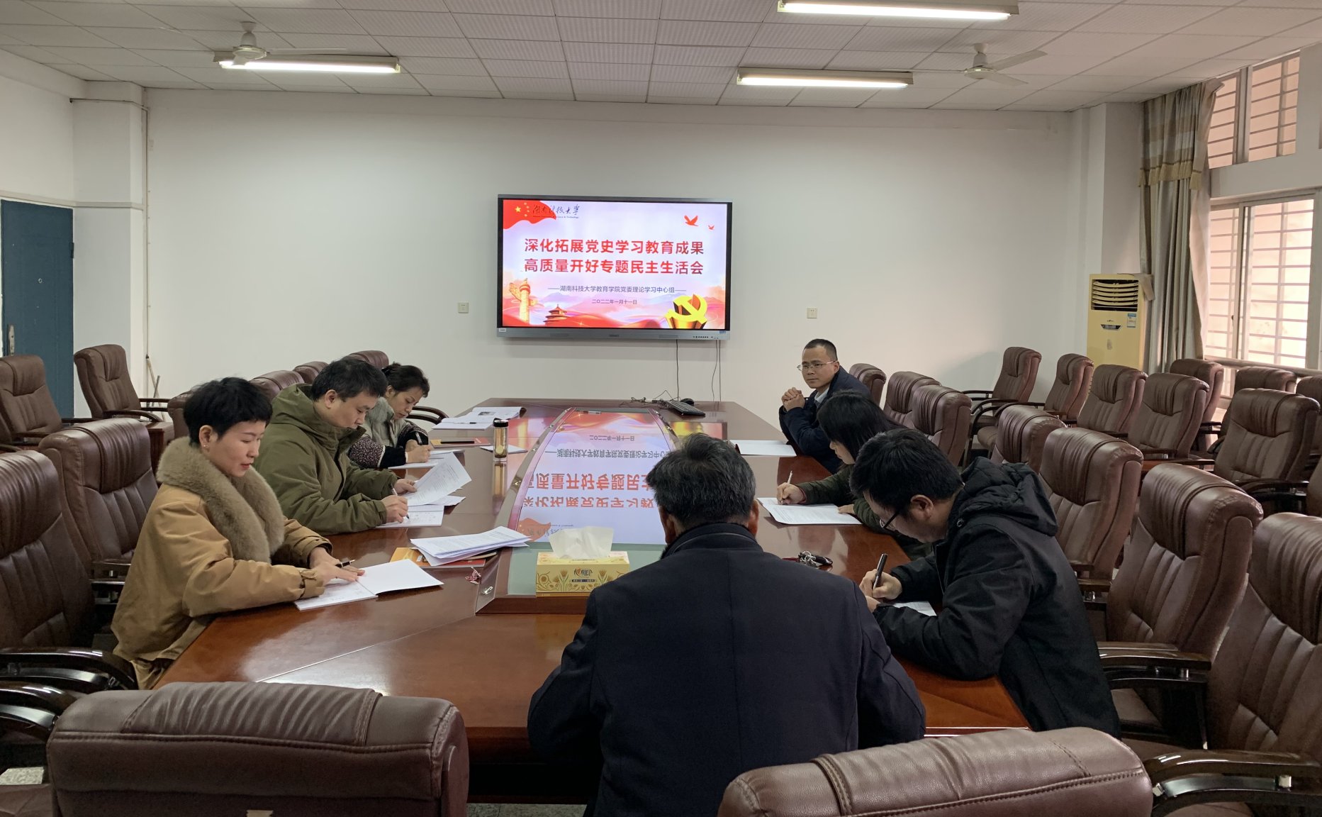 与会人员深入研读《中共中央政治局召开专题民主生活会 习近平主持会议并发表重要讲话》、《习近平:不断巩固拓展党史学习教育成果 团结带领全国各族人民满怀信心奋进新征程建功新时代》等内容。围绕主题开展深入研讨,进一步深化认识、统一思想,打牢开好民主生活会的思想基础,切实将学习成效转化为干事创业的不竭动力。