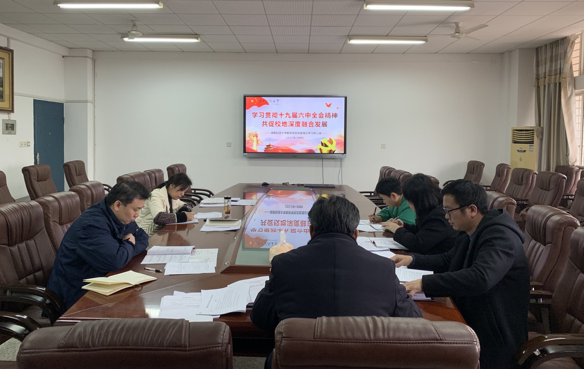与会人员深入研读《中国共产党第十九届中央委员会第六次全体会议公报》《中共中央就党的十九届六中全会精神举行新闻发布会》《湖南科技大学、湘潭经济技术开发区关于校地深度融合发展工作方案》等内容。认真学习相关文件精神,围绕主题开展深入研讨,如何更好地发挥高校和地方经济社会的优势,进一步推进校地深度融合发展,实现共建共赢。
