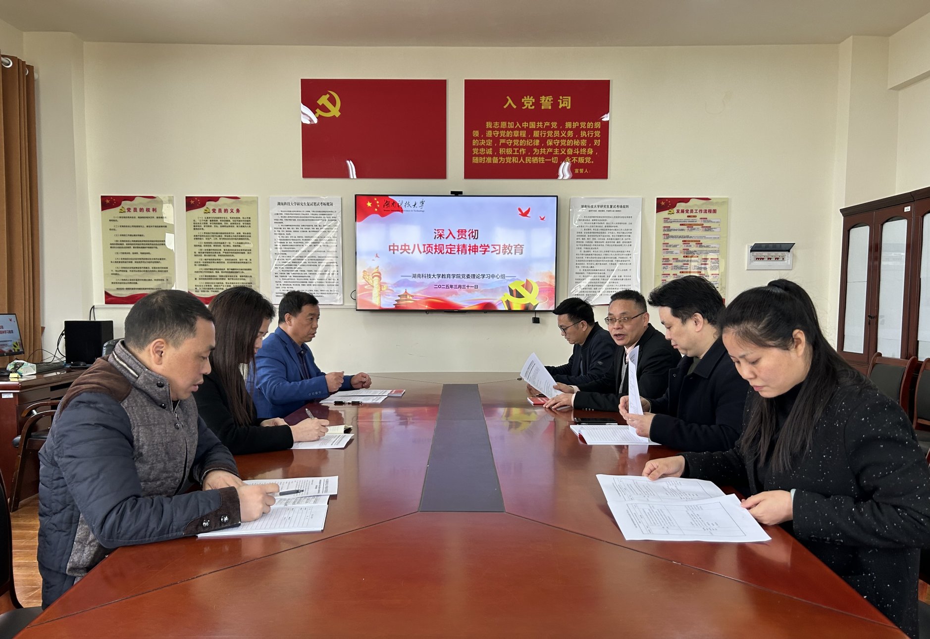为深入学习习近平总书记关于深入贯彻中央八项规定精神学习教育的重要讲话和重要指示精神以及中央、省委党的建设工作领导小组会议精神,研究部署学院深入贯彻中央八项规定精神学习教育工作。3月31日,yl88858永利集团党委理论学习中心组在敏行楼B301会议室举行“深入贯彻中央八项规定精神学习教育”专题学习。傅早霞同志主持。