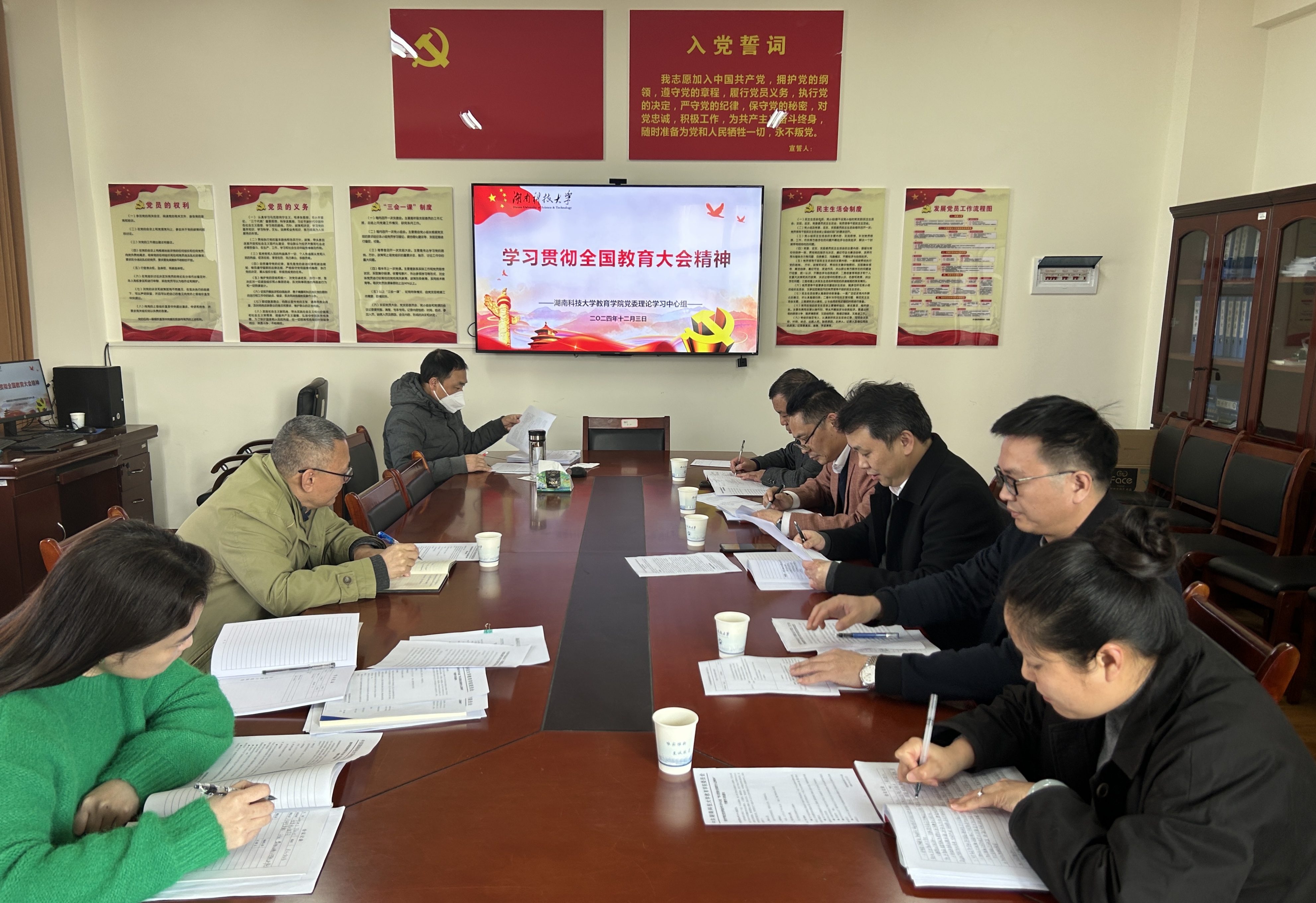 为贯彻落实党的二十届三中全会精神、深入学习贯彻全国教育大会精神,紧紧围绕立德树人根本任务,系统谋划、科学推进学院全面改革,促进学院高质量发展,12月3日下午,yl88858永利集团党委理论学习中心组在敏行楼B301会议室举行“学习贯彻全国教育大会精神”专题集中学习。学校特邀党建组织员何频到会指导,院长谭千保主持。