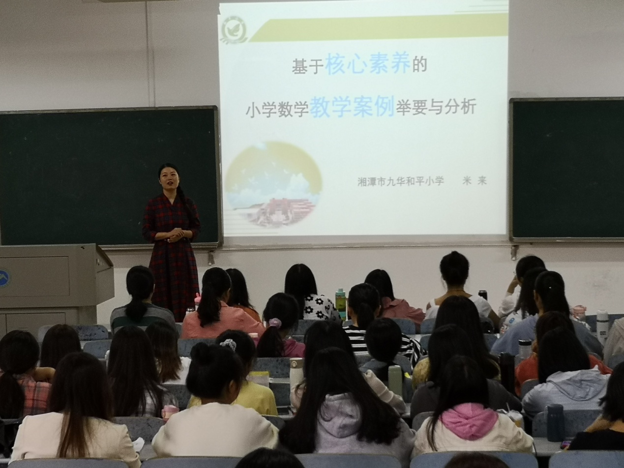您所在的位置: 首页» 人才培养» 本科生教育 躬行讲堂之七:名师米来莅临我院讲课 时间:2020-09-21 16:01:11 中国·yl88858永利(Macau)股份有限公司-Official Website 2020年9月21日上午,湘潭市九华和平小学教学副校长,国家级心理辅导员,国家级小学数学骨干教师培养对象,湖南省小学青年精英教师,湘潭市小学数学学科带头人,经开区小学数学名师工作室主持人米来老师应邀参加我院“躬行讲堂”,主讲17级小学教育专业课程:《小学教学案例分析》,讲堂由我院党委书记李炳煌教授主持。 米来老师为学生带来了精彩的专题教学:《基于核心素养的小学数学教学案例举要与分析》,通过多个案例的讲解,同学们对如何提高小学数学教学内涵有了更直观、具体的感受。