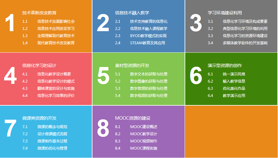 2018年5月,《现代教育技术》经过申报被立项成为校级精品开放在线课程,从2018年6月到2019年6月,课程团队对原教材(现代教育技术,湘潭大学出版社,2012版)进行了大幅度的修改后,于2019年8月在湖南人民出版社出版了版教材,在编写新版教材时,团队注意到了文字教材与MOOC建设的配合,并正式开始设计与建设MOOC课程。