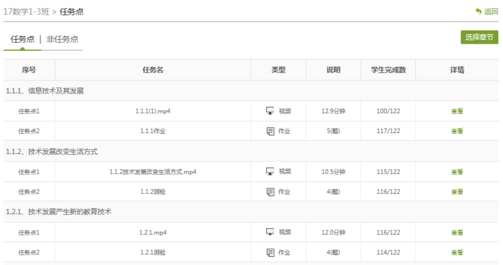 经过细分,本次MOOC教学中教学团队共将课程细分成了64个小的知识点,每一个小知识点录成一个微视频课,而一系列的微视频课又能够通过一个又一个的任务单形成一个较有逻辑体系的整体。