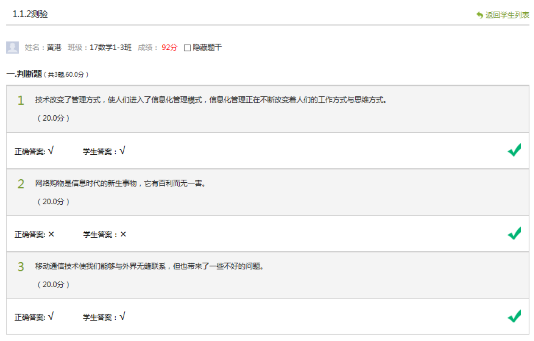 在一个班学习结束的当日,任课老师会及时查看学习情况,分析学生作业的正确率、错题的原因等,并及时通过各种途径与各自的学习班级进行联系,及时给予学习反馈。