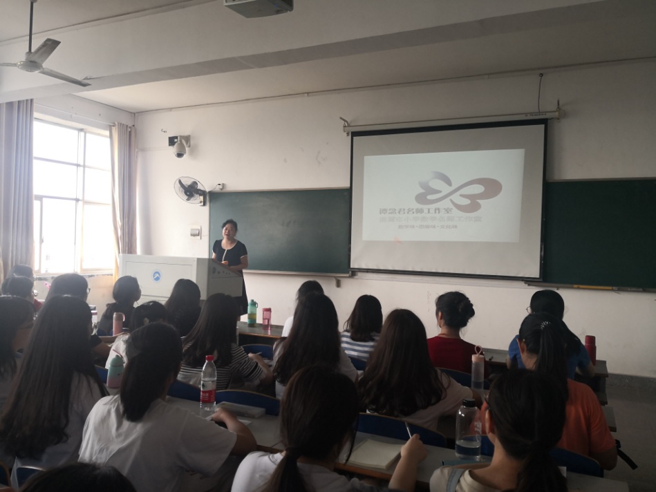 2019年9月16日下午,湘潭市雨湖区教育研究培训中心小学数学教研员、湖南省小学数学示范性工作坊坊主、湘潭市小学数学名师工作室主持人谭念君老师应邀参加“躬行讲堂”,主讲17级小学教育专业课程:《小学数学课程与教学论》,讲堂由我院党委书记李炳煌教授主持。
