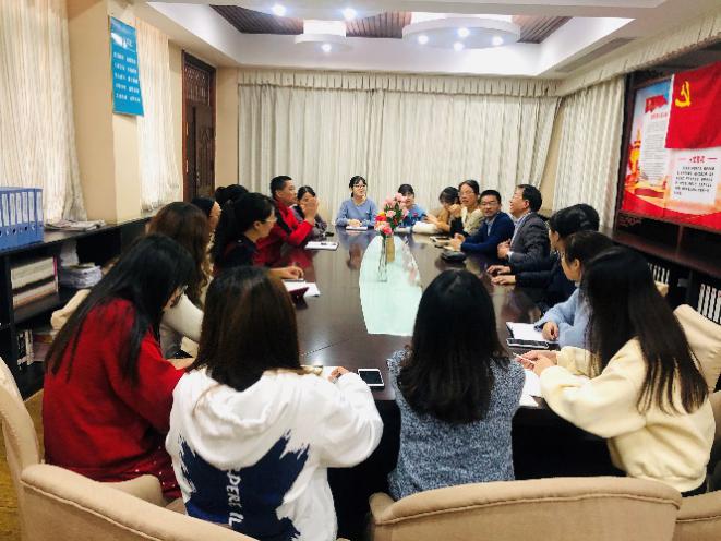 李海萍院长一行受到了六小党委书记胡老师、后勤副校长朱老师、刘水清主任以及部分实习导师代表的热情接待。两校领导、老师与实习生在六小会议室召开了热情友好的座谈会。首先,六小胡书记发表讲话,欢迎李海萍院长一行的到来,并简要介绍了601中英文小学有关实习工作的安排情况。胡书记指出充满活力与创新力的青年老师是一所学校的希望,全力培养年轻老师、帮助他们的职业成长是学校一直在做的事。“人和人的差别是在八小时以外”,胡书记鼓励我们实习生要积极实践并不断反思,培养良好的职业习惯,在人生第一次的教育实习中收获满满。接着,参会的四位实习生导师代表依次发言,高度评价了自己带领的实习生在这几周实习期内的工作表现、学习态度等,并指出各自应当努力完善的方向。导师发言结束后,三位实习生代表分享了自己在这段时间的感想与体会。最后,李院长代表学院对株洲601中英文小学对我院实习工作的支持表示衷心感谢。并指出,实习生们应以导师的鼓励为动力和鞭策,把握实习机会,在实习中不断成长,把书本上学到的理论与当下的实践有机结合起来。此外,李院长表示,实习基地的建立有助于促进双方在基础教育师资培养与基础教研工作的开展,希望能与六小进一步加强联系,合作共进。