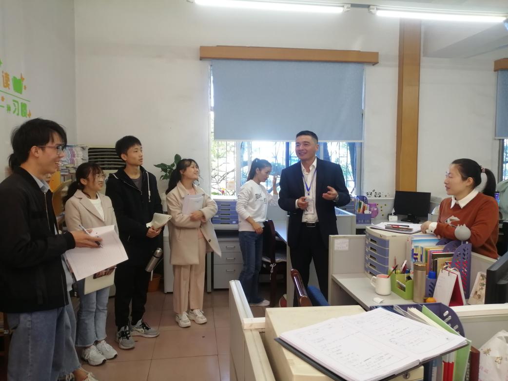 2020年10月22日上午九点,株洲市八达小学赵腾达校长为加深湖南科技大学yl88858永利集团的实习生们对于“学共体”(学习共同体)的认识和感受,组织同学们进入向娟老师的学共体英语常态化课堂观摩学习和研讨。