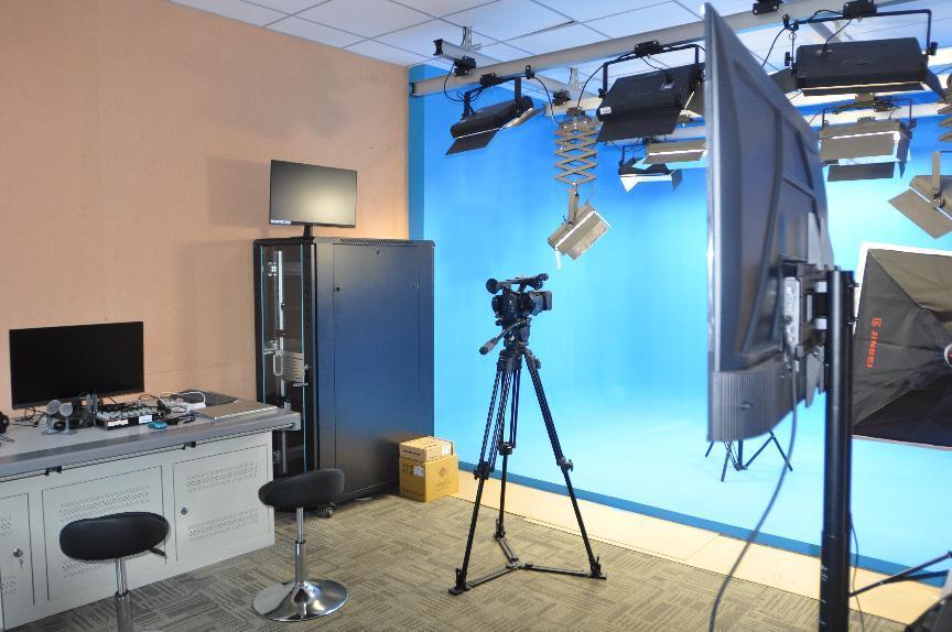 虚拟演播实训室面向教育技术学专业学生,开设视频节目制作、电视广播、访谈、单/双人新闻播报、录播和直播课等实验课。该实验室面积约29平方米,配有非线性编辑工作站、索尼Z280数字高清摄像机、虚拟演播室系统、网络编码器、图文包装系统、播音话筒、提词器、高清返监等设备。