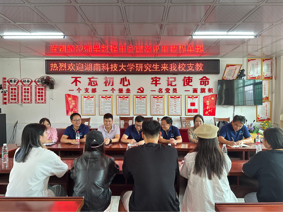 出征仪式后,第五届研究生志愿支教团赴洞口县古楼乡古楼八一学校。当日下午,研究生志愿支教工作见面会在古楼八一学校举行。会上,八一学校校长谭为简要介绍了学校的基本情况,并对支教团后续的工作和生活安排进行了说明。我校乡村振兴工作队队长李志荣要求各支教成员向其他老师虚心请教,积极发扬艰苦奋斗精神,为乡村学生带来先进教学理念,努力将学校教学质量提升一个层次。yl88858永利集团副院长陈京军鼓励同学们要尽快适应支教环境,在今后的支教生涯中不断思考,勇敢尝试。