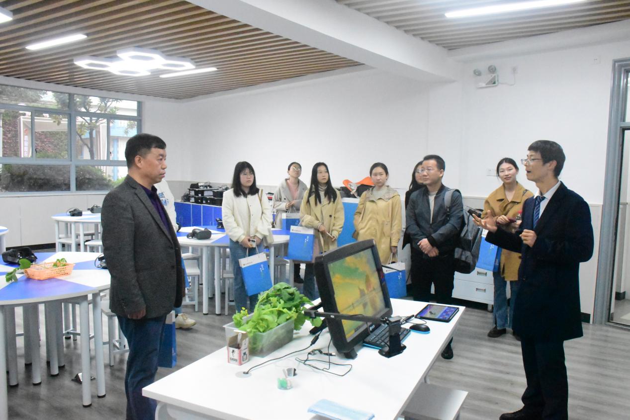 会后,师生一行人参观了长沙市雨花区砂子塘天花小学、岳麓区实验小学等学校的人工智能教室、VR体验中心、智慧教室等,调研了中小学智慧教育发展情况。