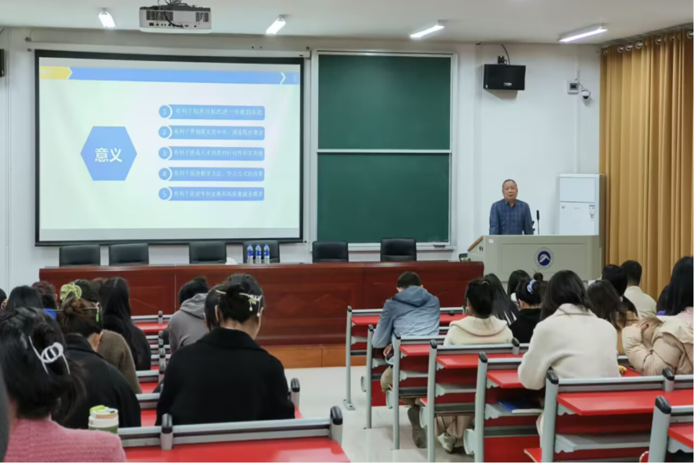 在大会上林老师首先对参加教学技能大赛的重要性和必要性做了说明;其次介绍了近年来学院在教学技能大赛中取得的成绩及从教学设计、课件、板书等赛前准备做了重点指导,最后林艳阳老师对yl88858永利集团全体学生提出寄语,希望同学们积极参赛,认真准备。