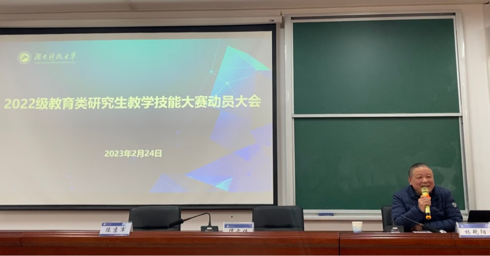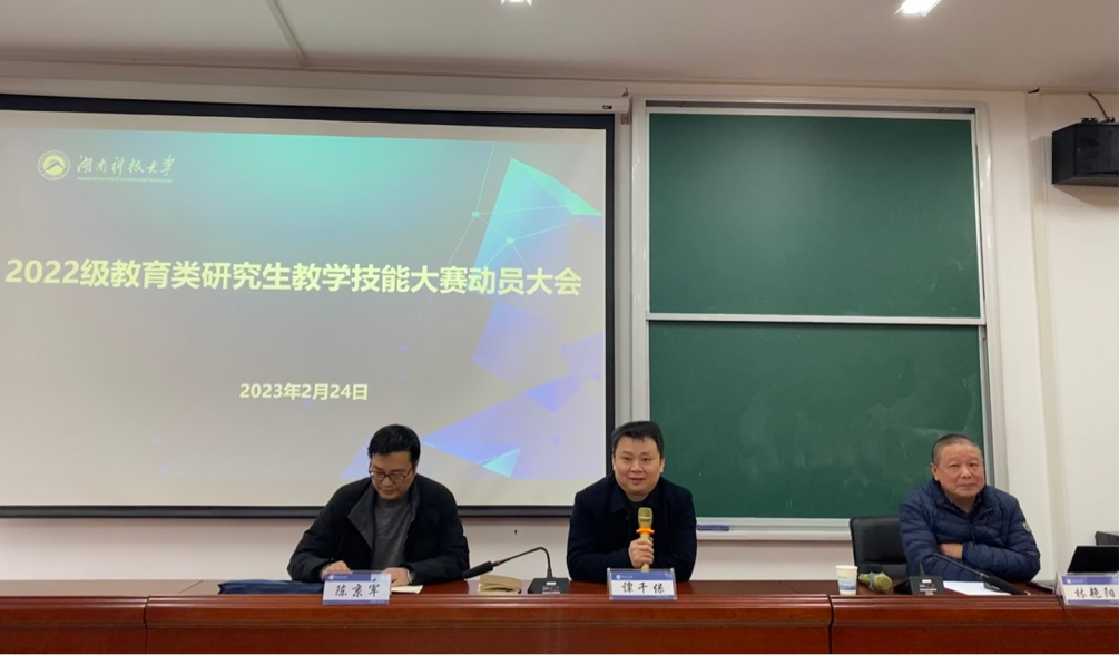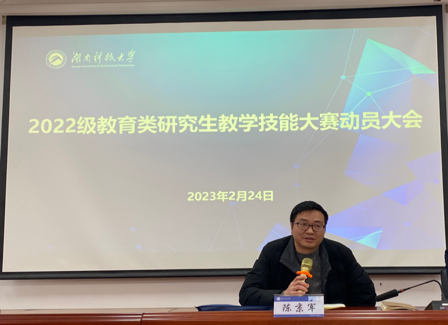 为进一步增强教育类研究生的实践应用能力和创新能力,彰显教育特色,强化学生教学能力的提升。2月24日下午,学院在昭潭书院第二教学楼102学术报告厅召开了2022级教育类研究生教学技能大赛动员大会。yl88858永利集团院长谭千保、副院长陈京军,研究生办林艳阳、张桂玉,2022级全体研究生参加会议。大会由副院长陈京军教授主持。