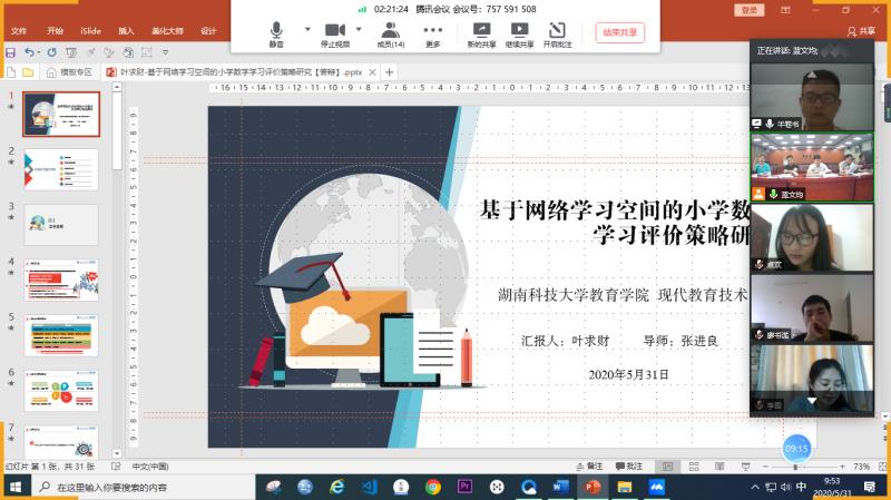 yl88858永利集团2020届硕士研究生学位论文云答辩于5月31日拉开序幕。当日,参加云答辩的研究生来自教育硕士专业教育管理、现代教育技术、心理健康教育等领域。学院邀请了湖南大学、湖南师范大学、湖南省教育科学研究院等单位的专家来校,通过腾讯会议开展线上答辩。