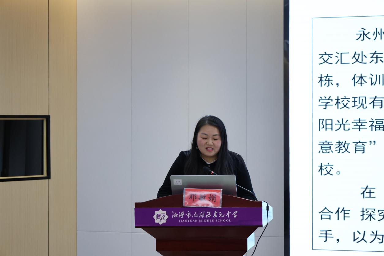 ▲永州市第二十中学老师邓敏娟 《生态活力教育,阳光幸福师生——班级管理经验介绍》