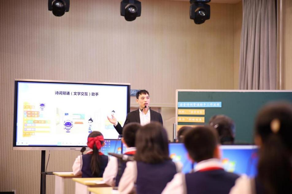 在课例研讨环节,泰禹第二小学的黄威老师与周红亮老师分别进行了人工智能项目式教学的优秀课例展示,学生学习积极性高,反响热烈。