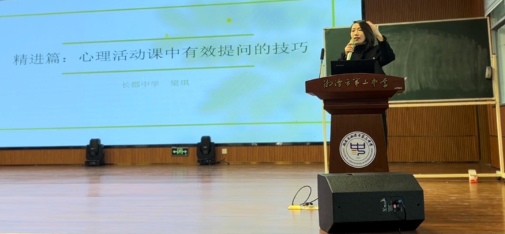第三阶段,由长郡中学心理中心主任梁琪老师带来主题为《心理活动课中有效提问的技巧》的专题讲座,梁老师提出课堂提问的设计要呈现出老师对课堂目标与学生需求的理解,教师要以生为本聚焦课堂生成,使心理活动课从有意思的课堂发展成有意味的课堂。