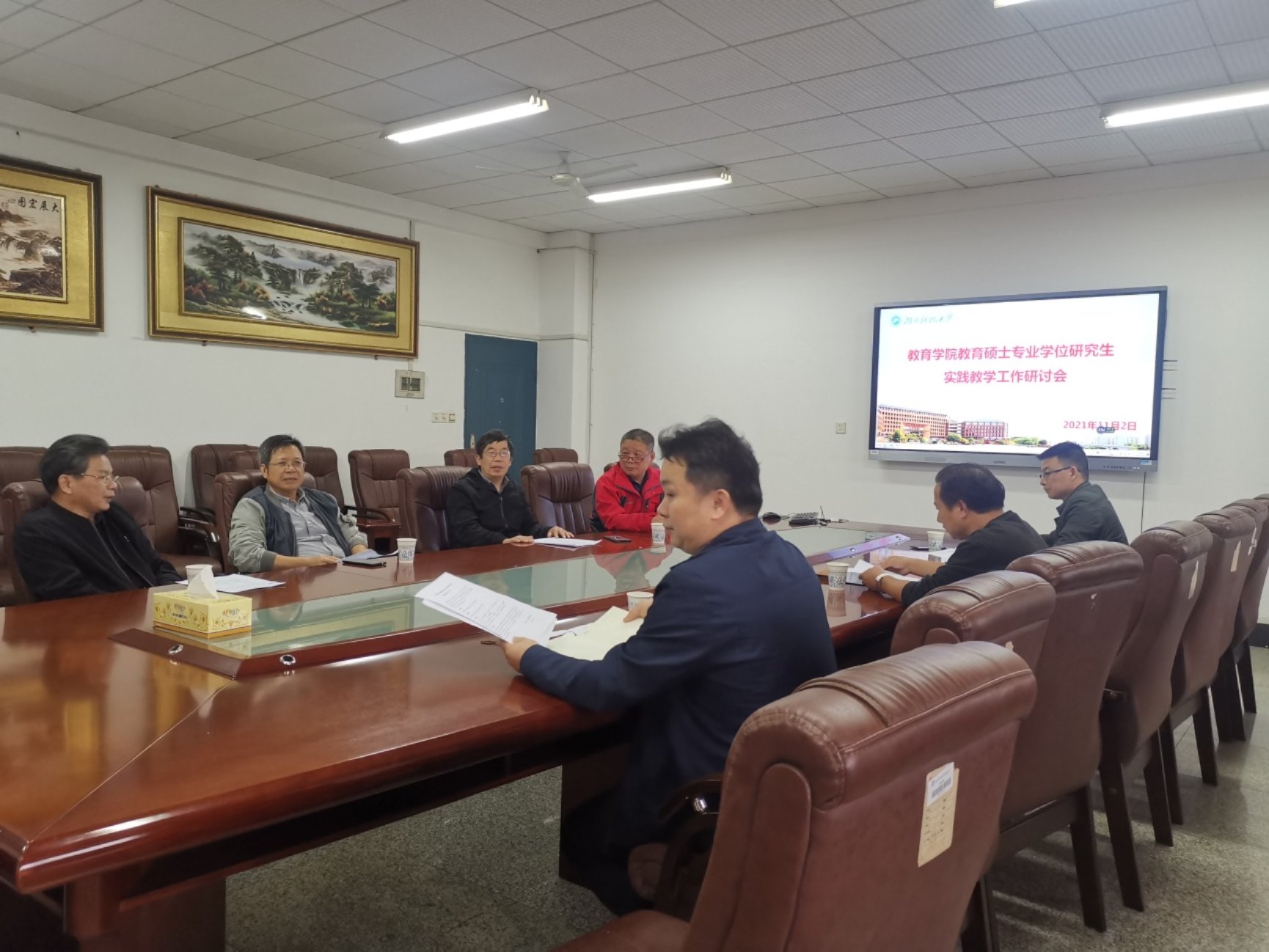 11月2日下午,yl88858永利集团教育硕士专业学位研究生实践教学研讨会在第八教学楼208会议室举行。学院党委书记李炳煌、副院长谭千保、各专业领域负责人、研究生办全体工作人员出席,会议由谭千保主持。