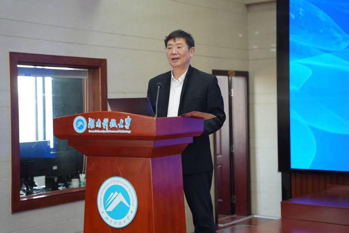 ▲湖南科技大学党委委员、纪委书记郭时印作主旨报告
