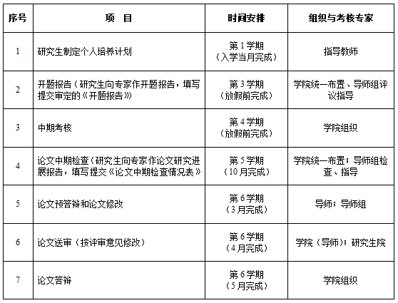 本学科研究生应在入学后一个月内,在导师及导师组的指导下依据本学科培养方案的要求制定和提交《湖南科技大学硕士研究生个人培养计划》,包括课程学习和学位论文工作计划。学位论文工作包括研究方向、已有工作基础、研究计划和时间安排等,从提交合格的开题报告日期起到论文答辩,学位论文撰写的时间不得少于一年。