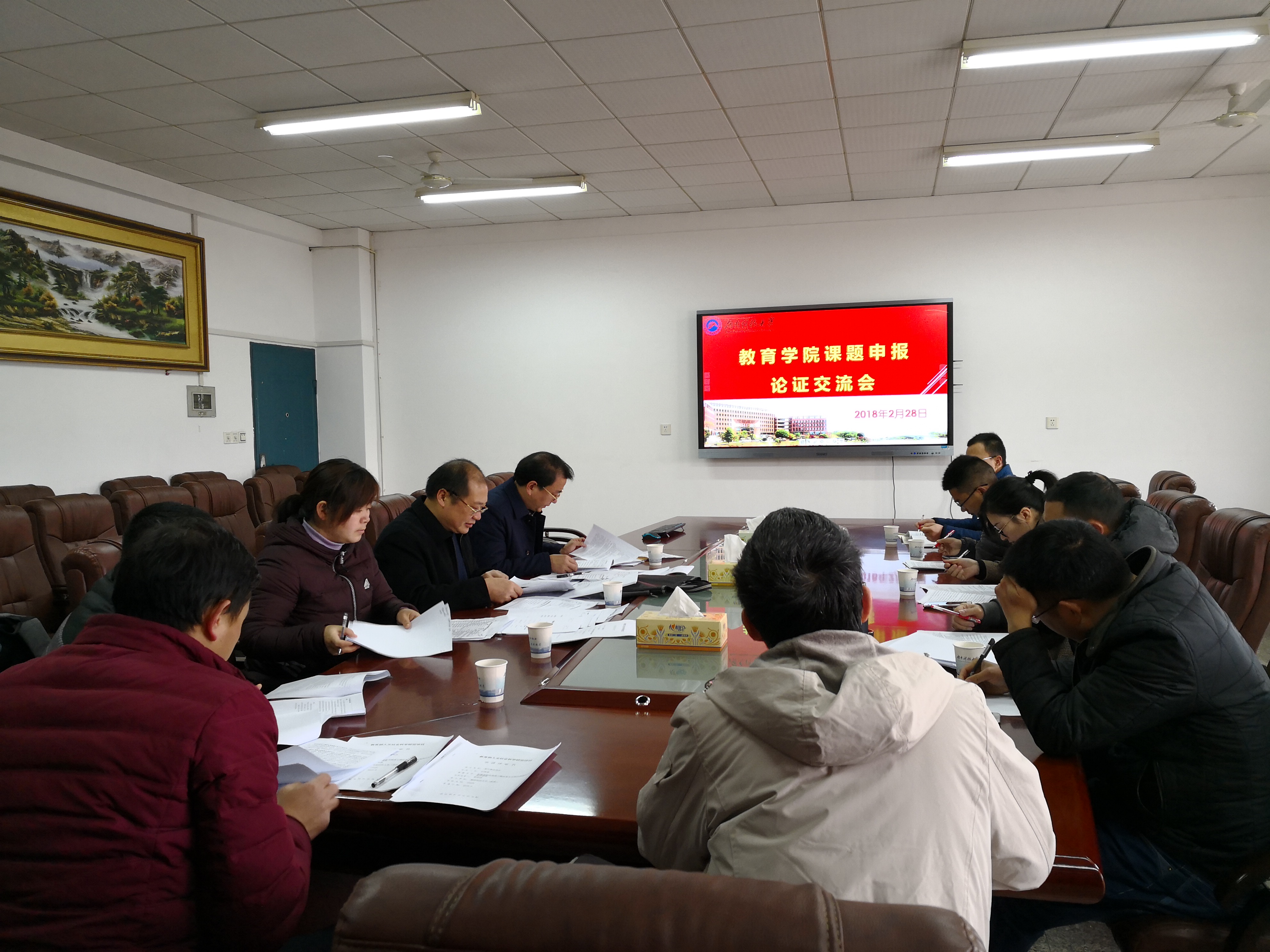 您所在的位置: 首页» 科学研究» 科学研究 学院组织召开2018年科研项目申报论证会议 时间:2018-03-03 00:00:00 中国·yl88858永利(Macau)股份有限公司-Official Website 2018年2月28日,新学期伊始,学院组织召开了科研项目申报论证会,院领导和部分老师参加了此次学术活动。会议由李海萍院长主持,邀请罗建文教授出席并指导。会上,老师们就申报书的选题、论证、重点难点、研究基础、学术创新等内容与罗建文教授进行了深入交流和探讨,罗建文教授结合自身多年的研究经历和申报经验提出了许多宝贵的意见和建议,老师们受益匪浅,深受启发。此次会议为学院2018年度课题申报打下了坚实的基础。