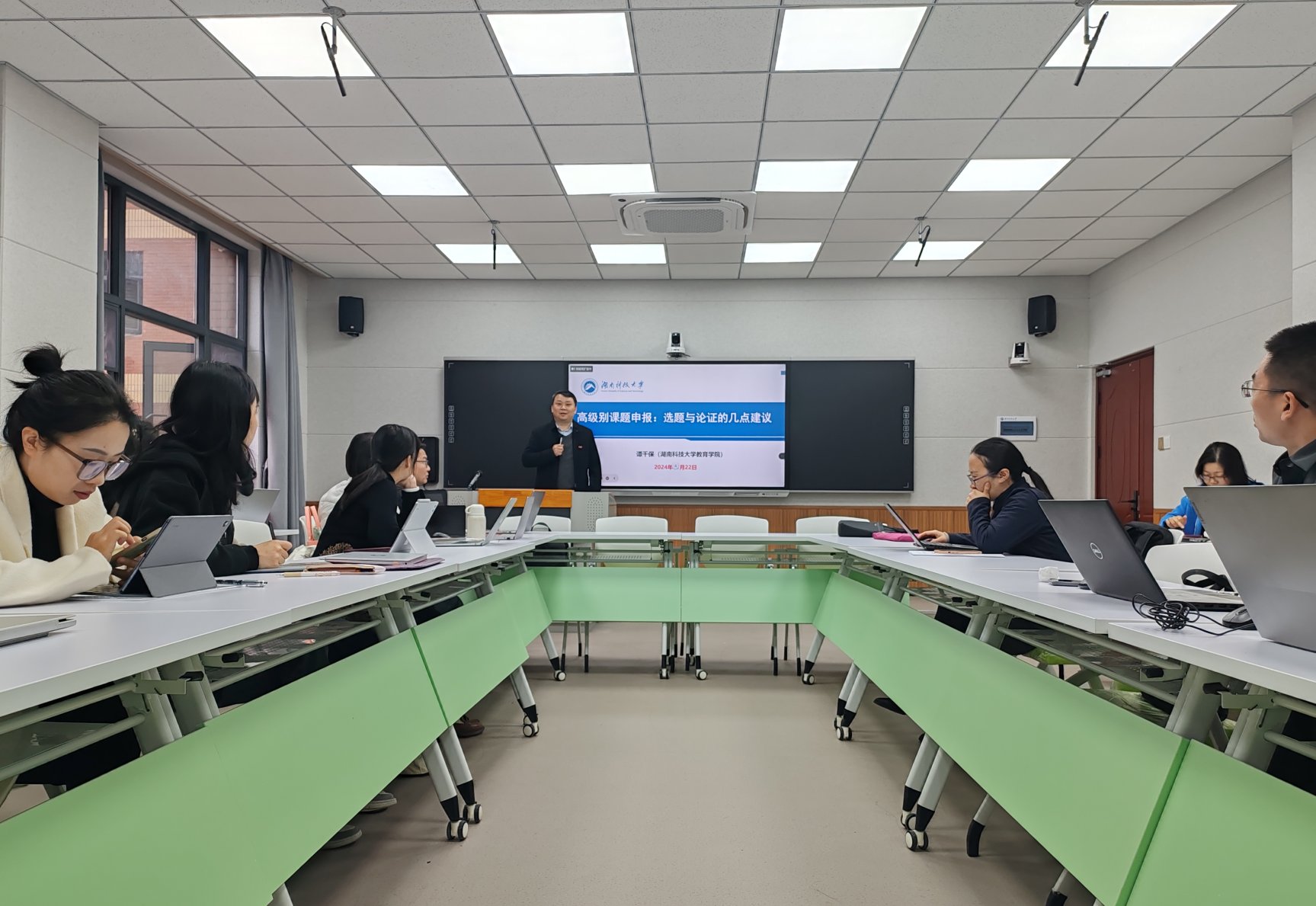 会上,谭千保就2025年国家社科基金项目的申报工作进行了深入动员并作《高级别课题申报:选题与论证的几点建议》经验分享。他强调,参与国家社科基金项目申报对于提升学院整体科研水平、扩大学院影响力以及促进教师个人职业发展具有重要意义,申报过程中要注重课题的创新性和实用性,积极寻求合作伙伴,共同推进课题研究的深入发展,确保课题研究能够为社会和学术界带来积极的影响。