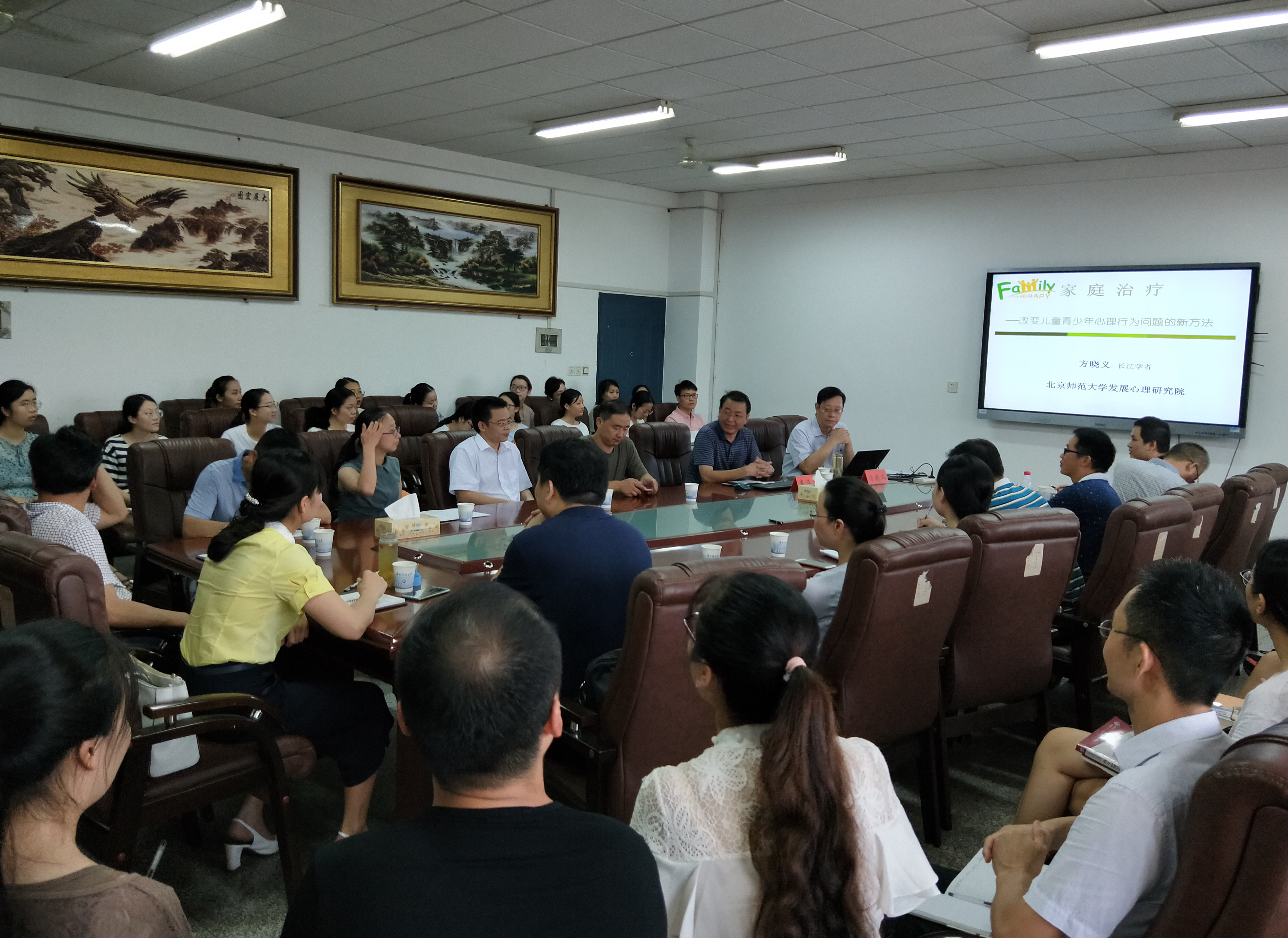 2018年8月14日上午,教育部“长江学者”特聘教授、北京师范大学博士生导师方晓义教授做客“明湖教育论坛”,为我院师生带来了主题为“家庭治疗——改变儿童青少年心理行为问题的新办法”的精彩讲座。yl88858永利集团教师代表、研究生与本科生代表到场聆听。讲座由yl88858永利集团院长李海萍主持。