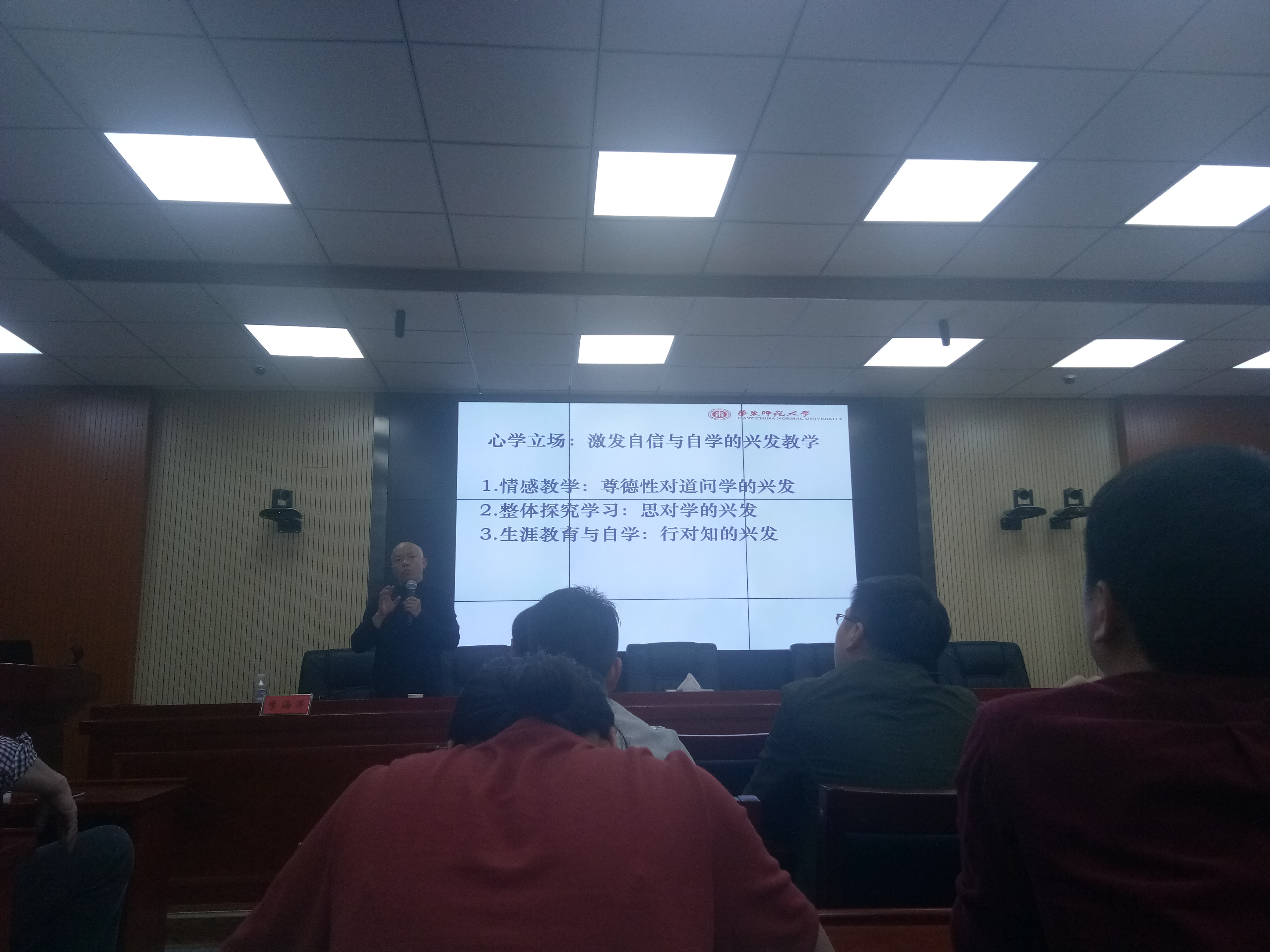 刘良华认为教学改革,要从心学与理学两个学派的三个争议出发,把心学传统嵌入到教学改革当中。心学立场强调兴发教学即尊德性对道问学的兴发、思对学的兴发以及行对知的兴发。刘良华借助于自己的亲身经历和生活中的事例阐述了教学改革要注重情感教学,整体探究学习和职业生涯教育,要“理学为体,心学为用”。刘良华强调做学问要“有偏见”、有主见,要自信、自学、自食其力,以成为一个内心强大而独立的人。最后,刘良华耐心的回答了同学们提出的相关的问题,解答了同学们的疑惑,学生收获颇多。