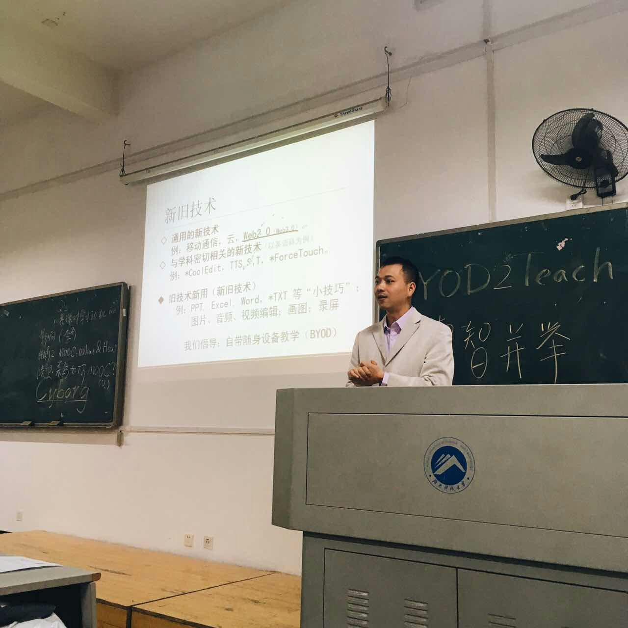 2016年10月13日,应yl88858永利集团的邀请,湘潭市中小学信息技术名师工作室导师、湘潭市第一中学毛方吉老师在八教2-3作了题为《从MOOK到SPOC——中小学“慕课”教学与教师培训经验谈》的专题讲座,讲座由yl88858永利集团谭千保老师主持,2016级教育硕士参加了此次专题讲座。讲座开始前,毛方吉老师通过微信平台收集了三位同学的提问:MOOC到底是什么?MOOC对学习动机有什么影响?菜鸟应该如何学习MOOC?毛方吉老师的报告分为三部分:中小学“慕课”教学现状、如何促进中小学“慕课”教学发展、基础教育中教师“慕课”教学技术的培训。首先,毛方吉老师从中小学教师、中小学教师培训者以及教育技术专业研究人员三重受众身份的角度指出:当前中国,慕课教学遭遇瓶颈期,受众对MOOC的了解来源于网上文献和自身有限的在线学习经历。其次,他认为中小学教育工作者需要高度重视“慕课”教学的发展。同时,他对本土前沿的中小学MOOC实践经验给予了充分肯定,认为其对当前学习研究和将来工作展开或有裨益。最后,对于如何促进中小学“慕课”教学发展,毛方吉老师强调应注意两点:一方面要注重分享个人学习经历,突出实践,强调技术和学科深度融合;另一方面要重视录屏、VR等基础技术和“超级讲师”等移动学习和移动教学的应用。在基础教育中教师“慕课”教学技术的培训中,毛方吉老师呈现和解读了多个MOOC在中小学多学科教学与教室培训中应用的案例,以及多平台SPOC应用案例。除此之外,毛老师还现场演示了如何使用APP来进行慕课,将未来授课的无限可能展示于大家面前。讲座结束后,毛放吉老师对2016级教育硕士提出的疑问一一作了耐心的解答。